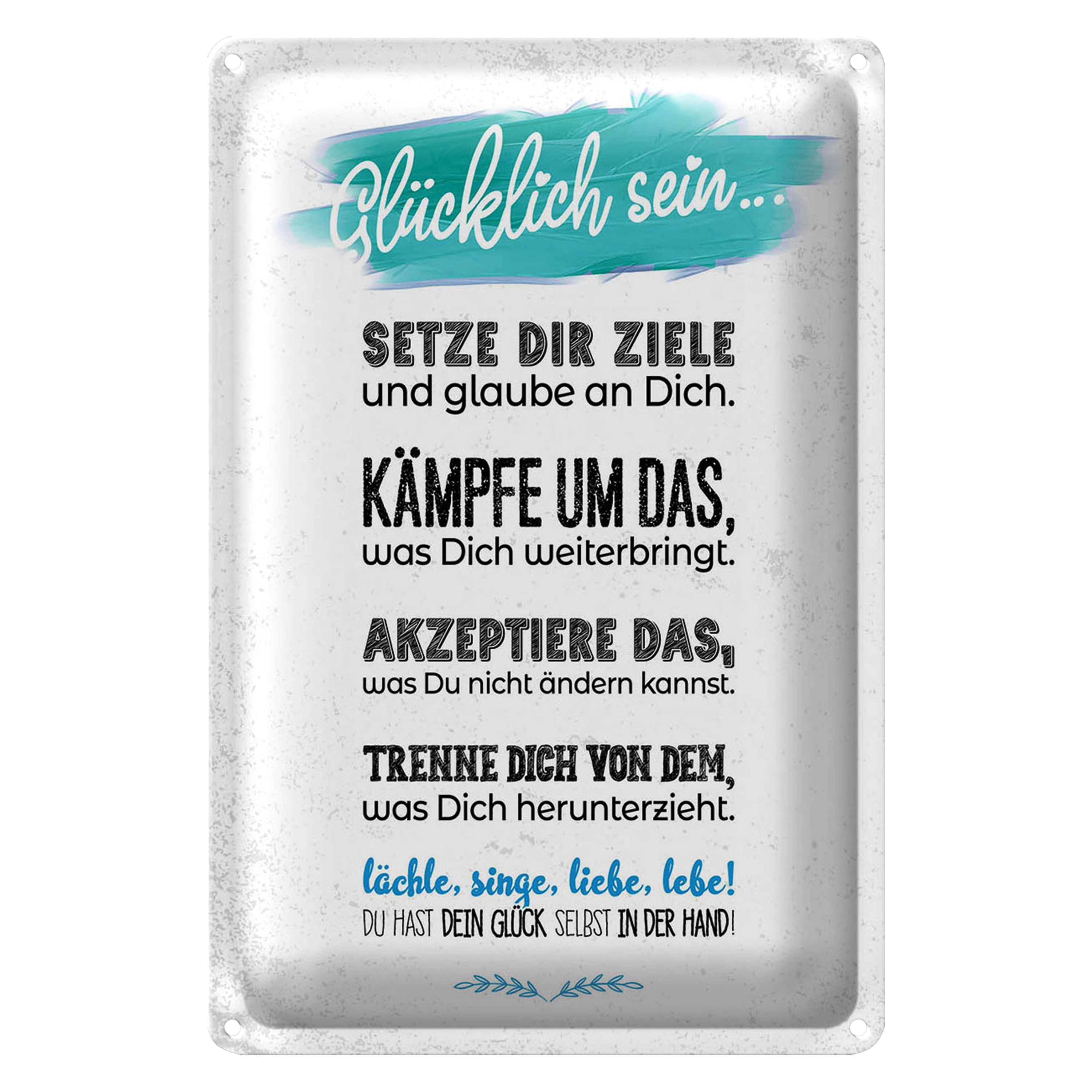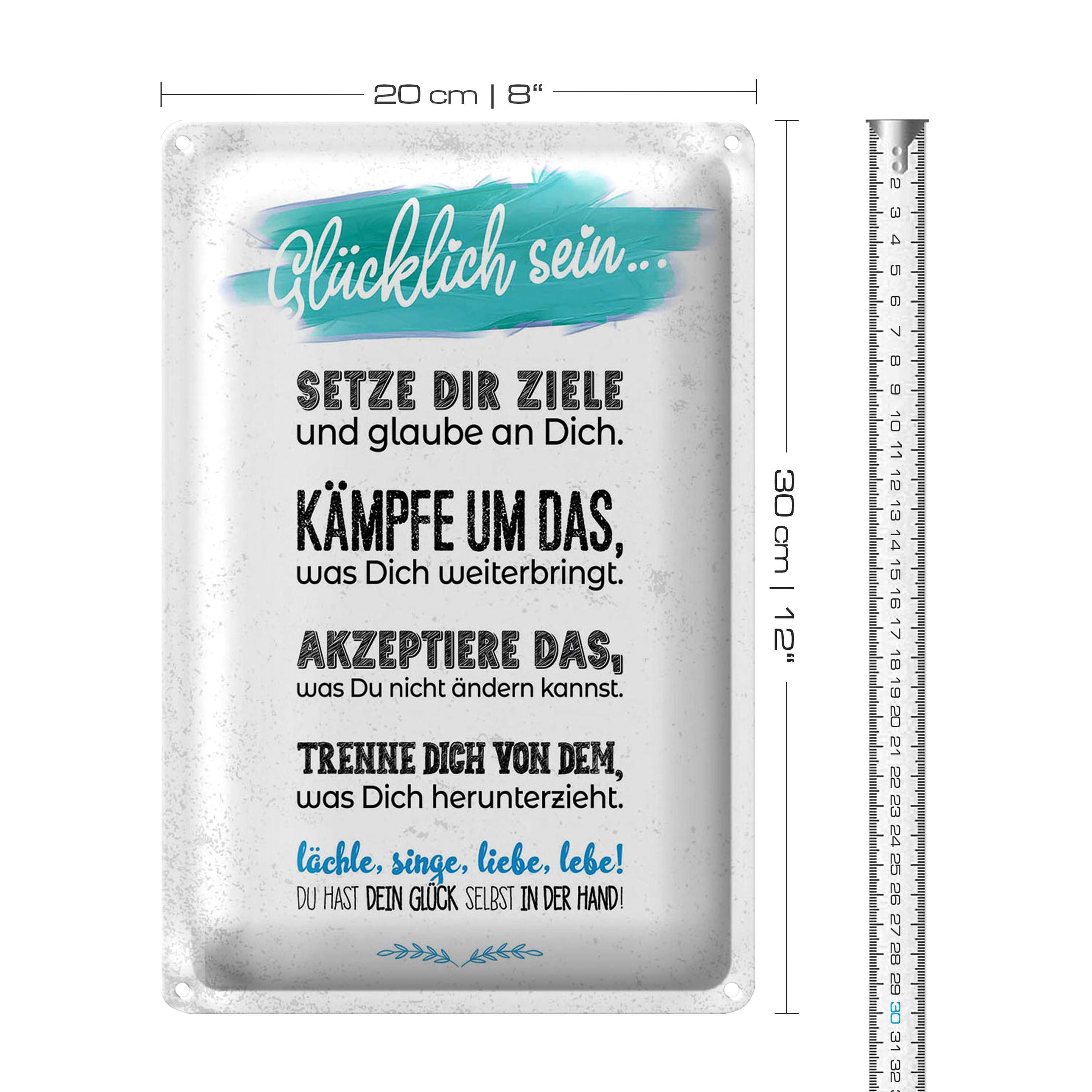 Blechschild Spruch Glücklich sein setze dir Ziele 20x30cm