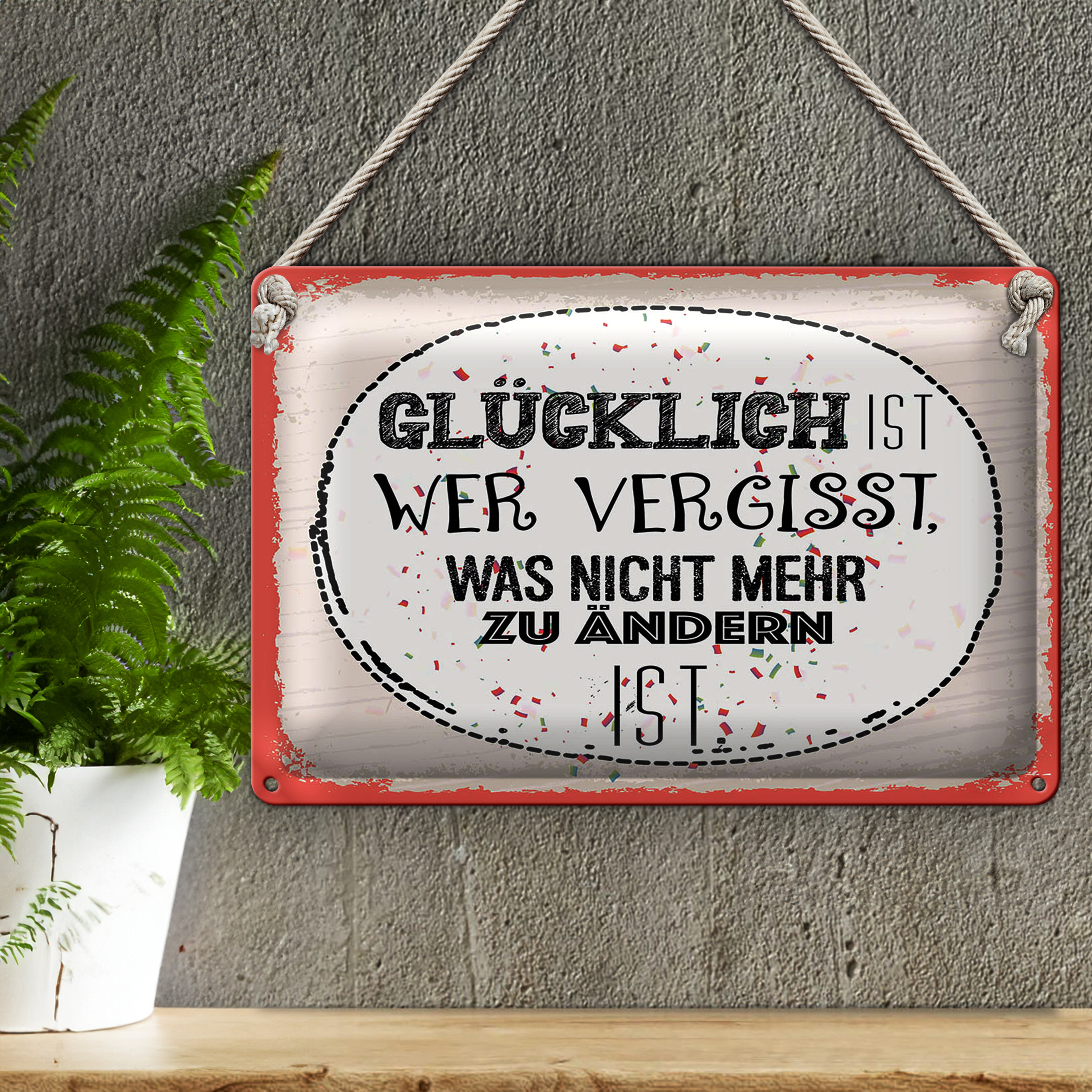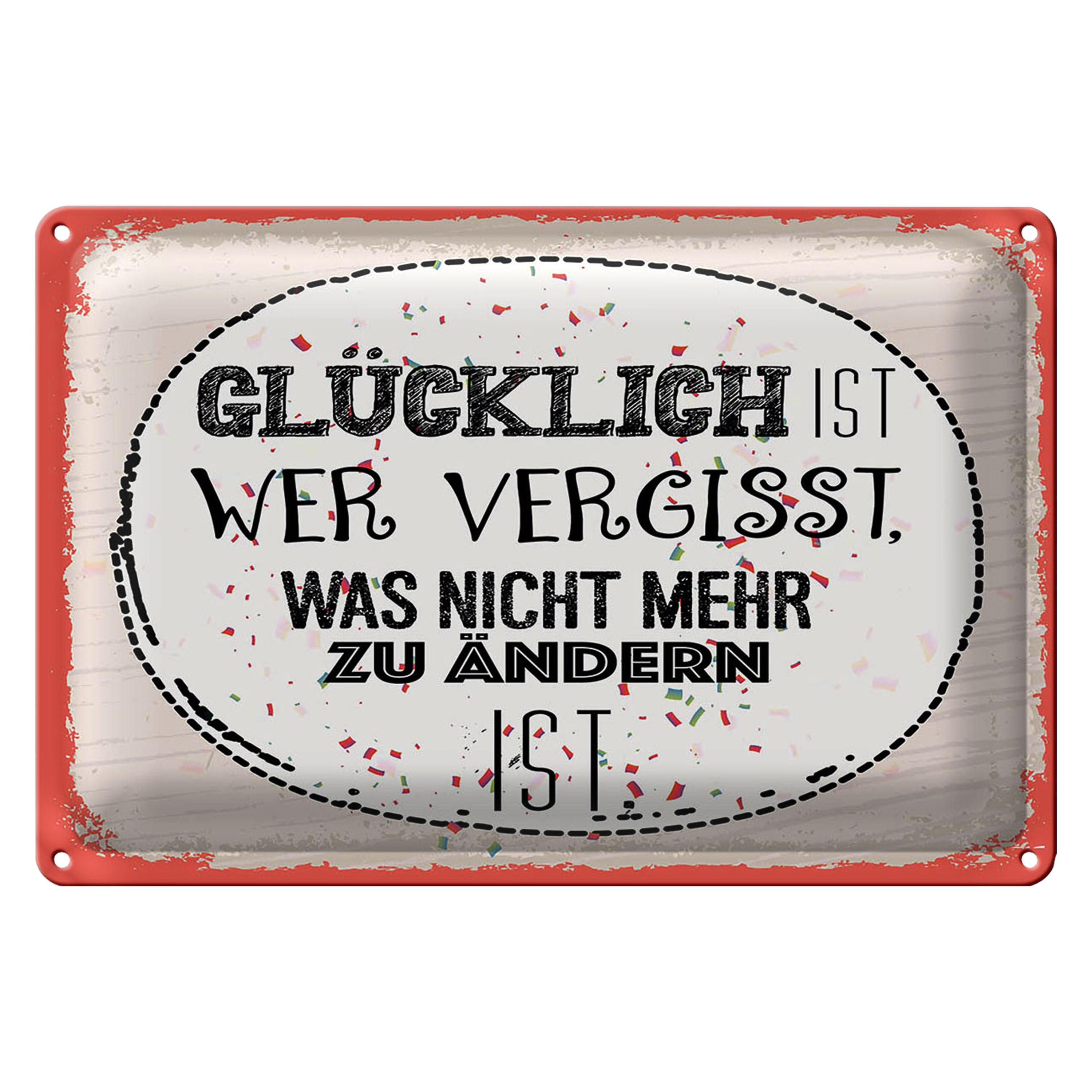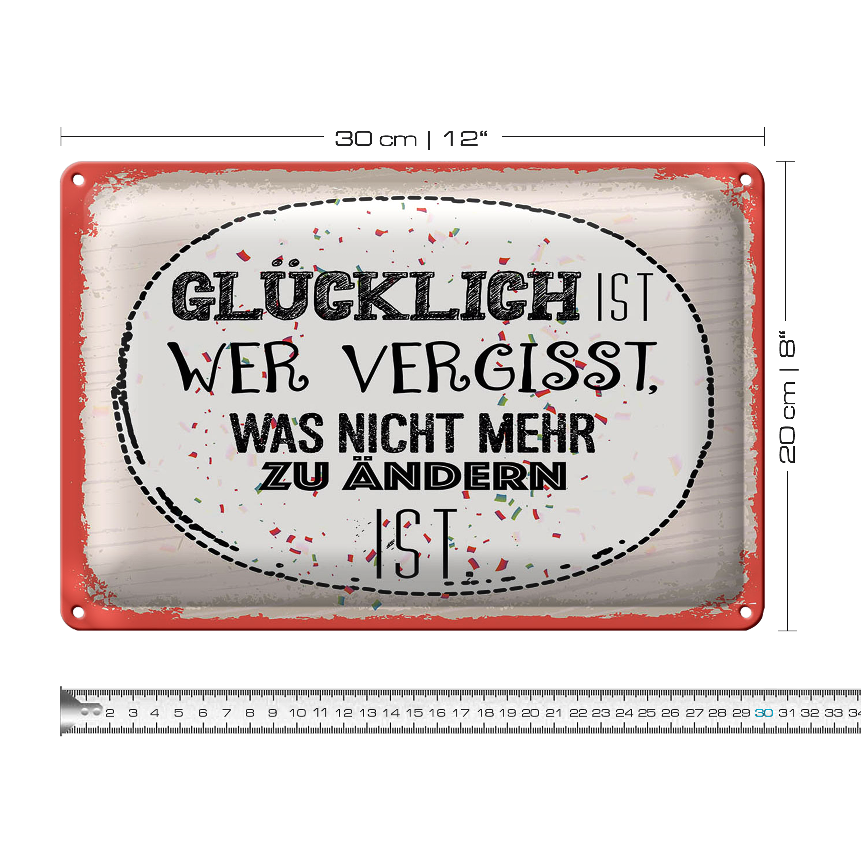 Blechschild Spruch Glücklich wer vergisst 30x20cm