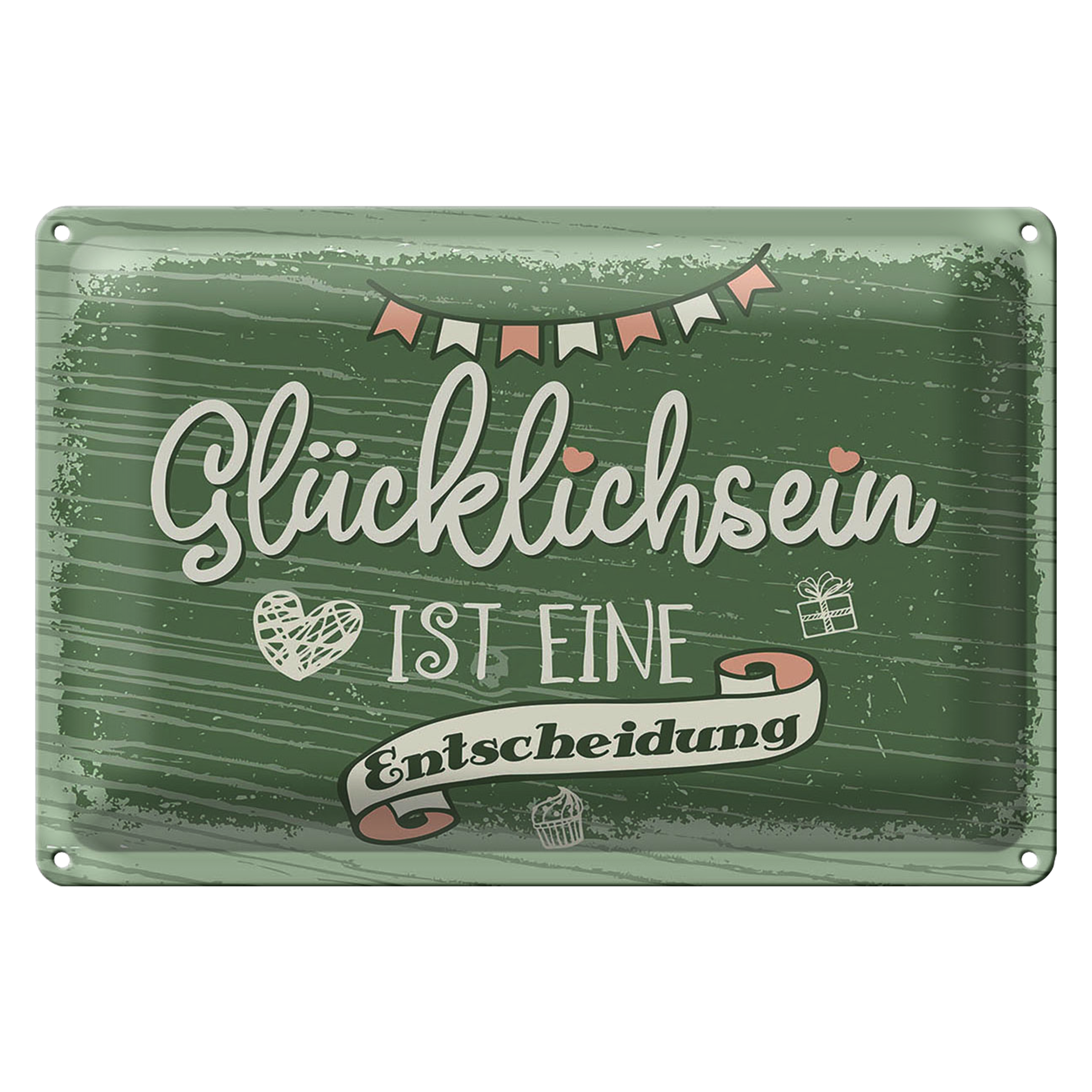 Blechschild Spruch Glücklichsein ist Entscheidung 30x20cm