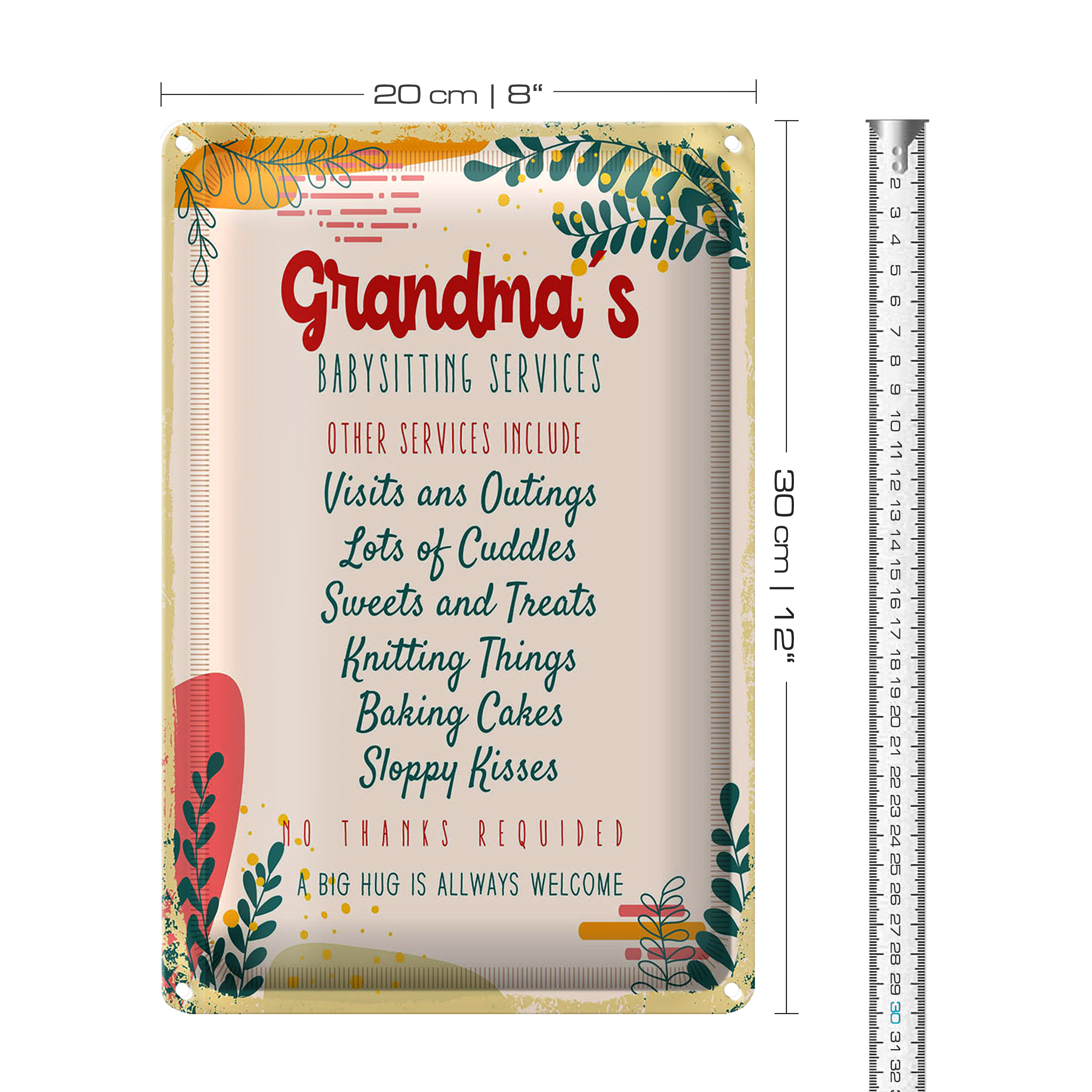 Blechschild Spruch Grandma's Babysitting services 20x30cm