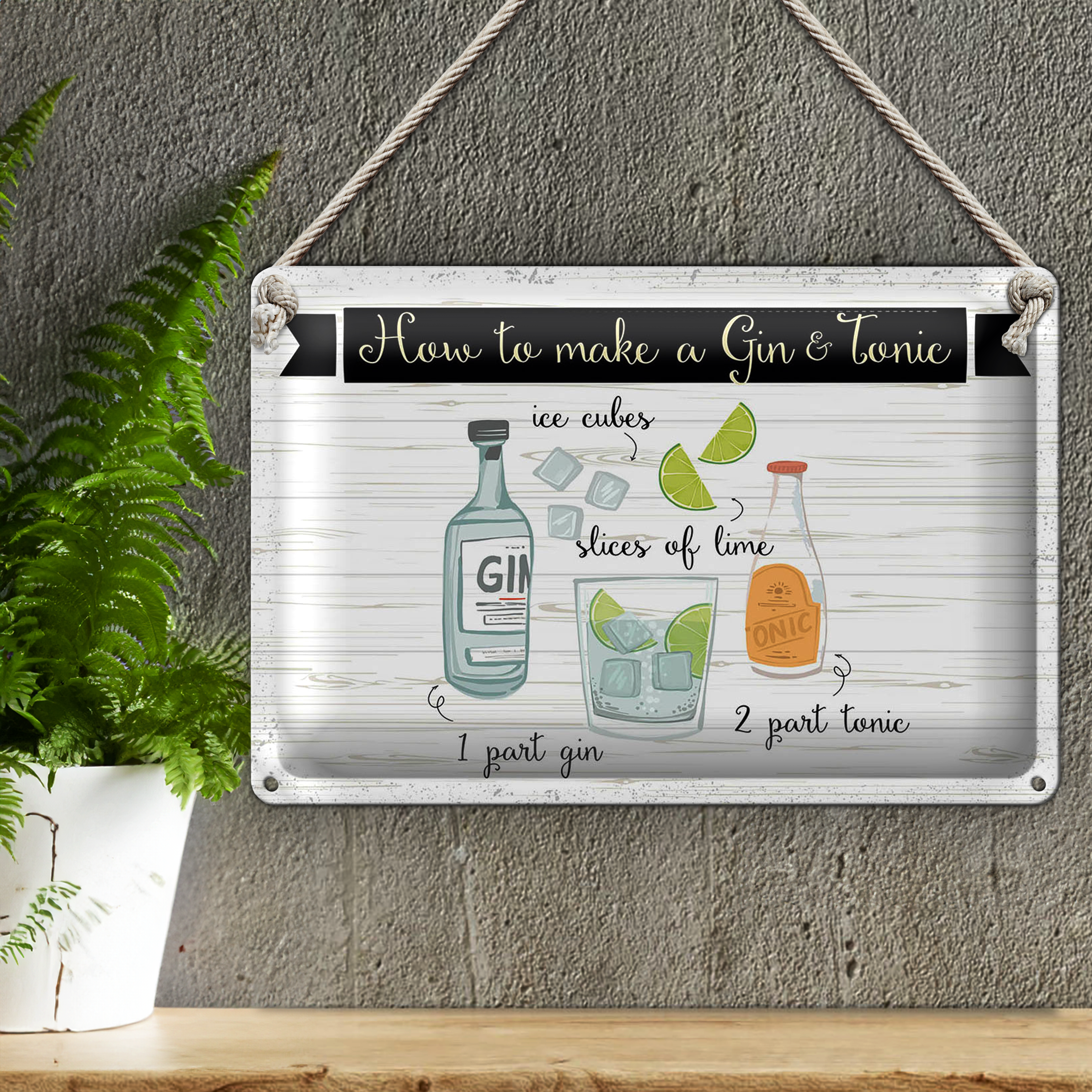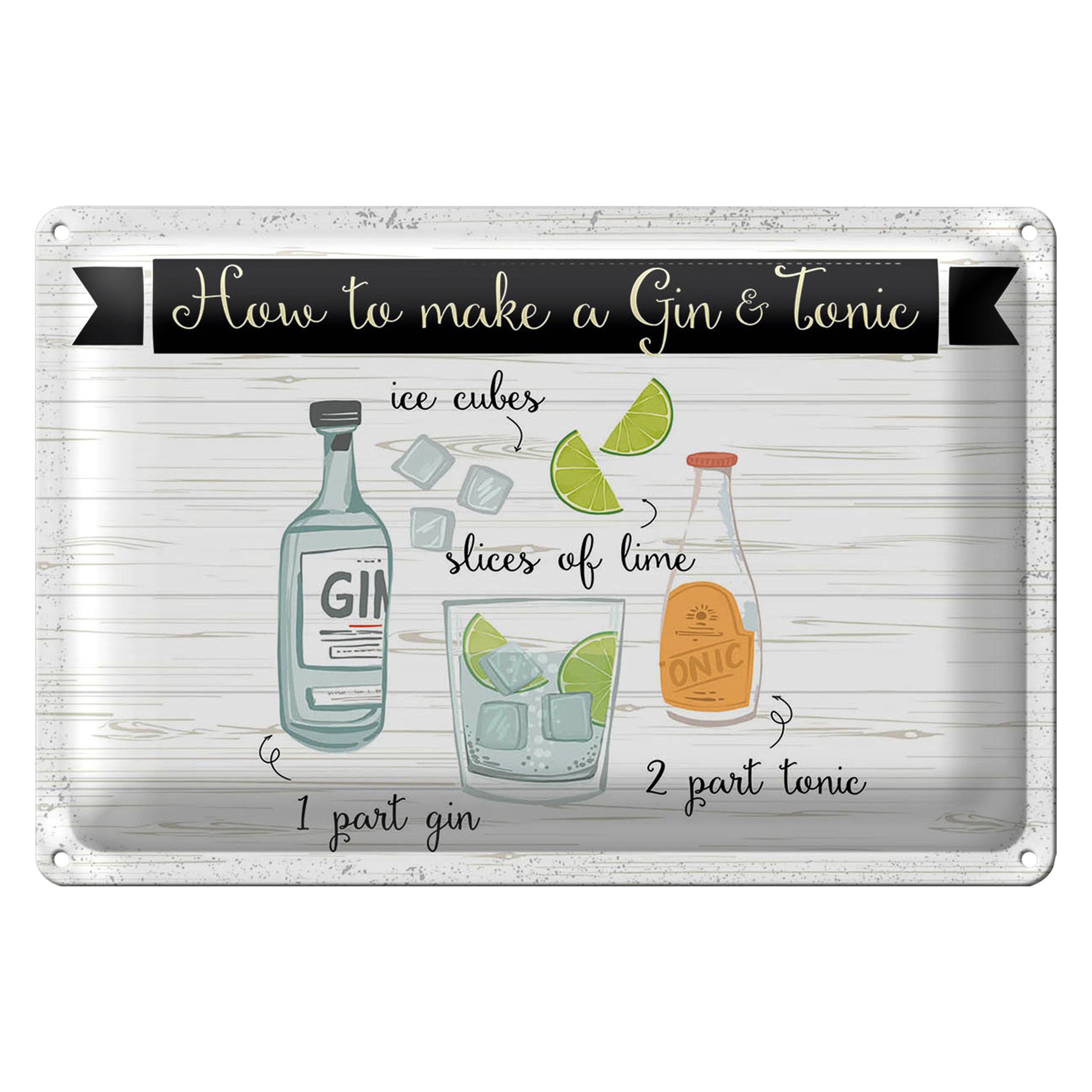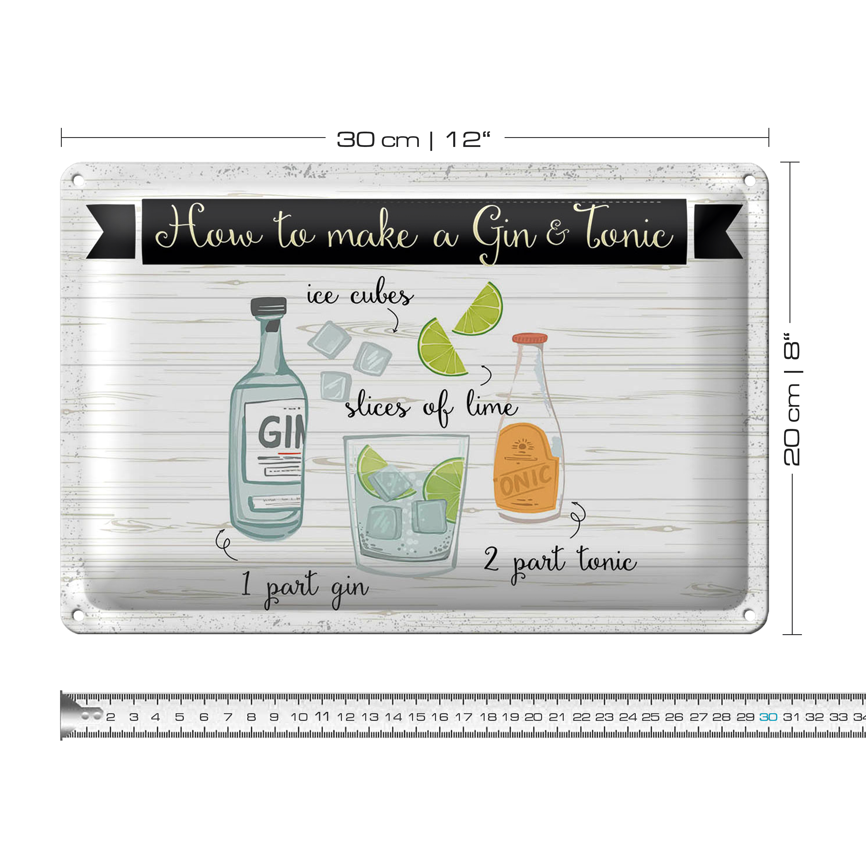 Blechschild Spruch How to make a Gin & Tonic 30x20cm