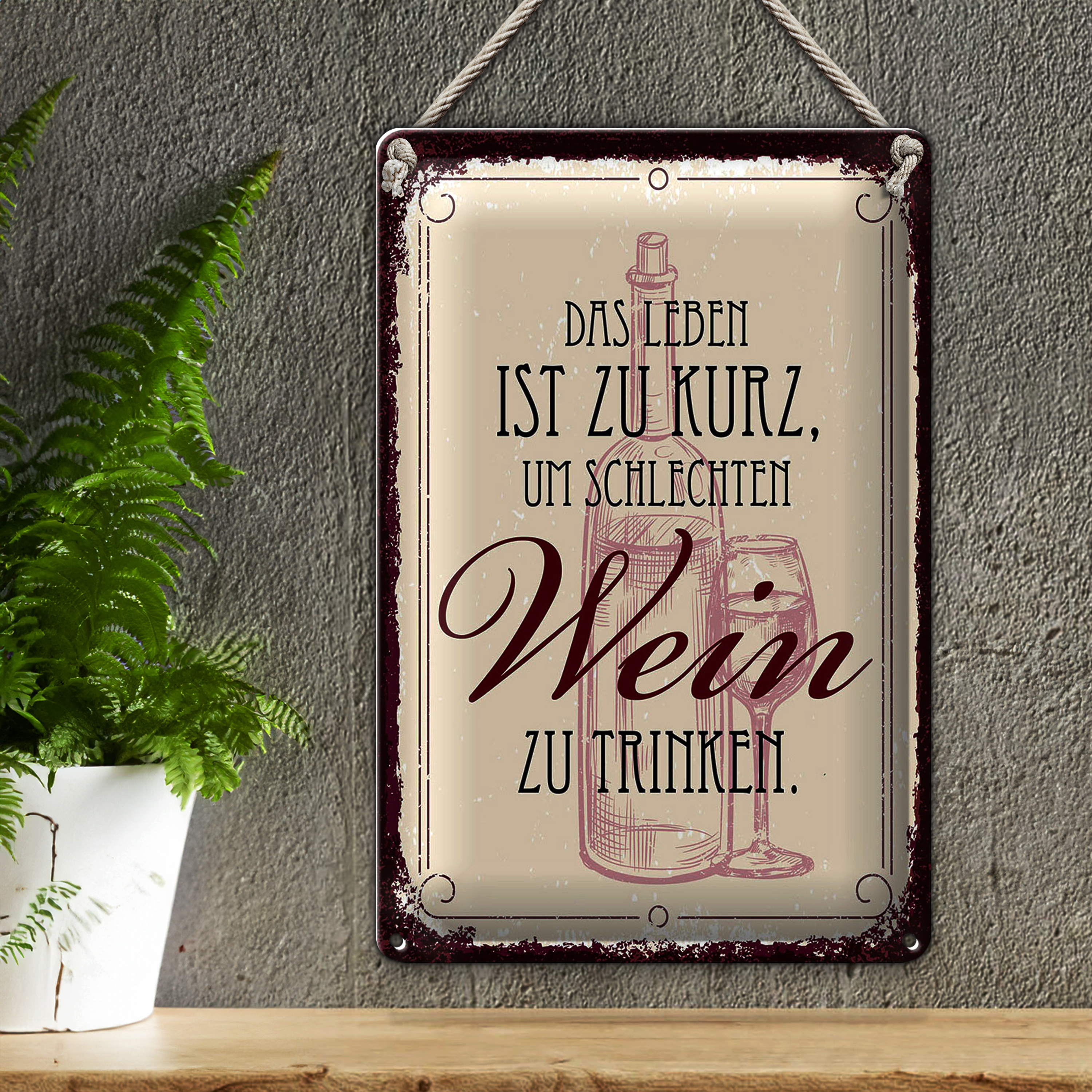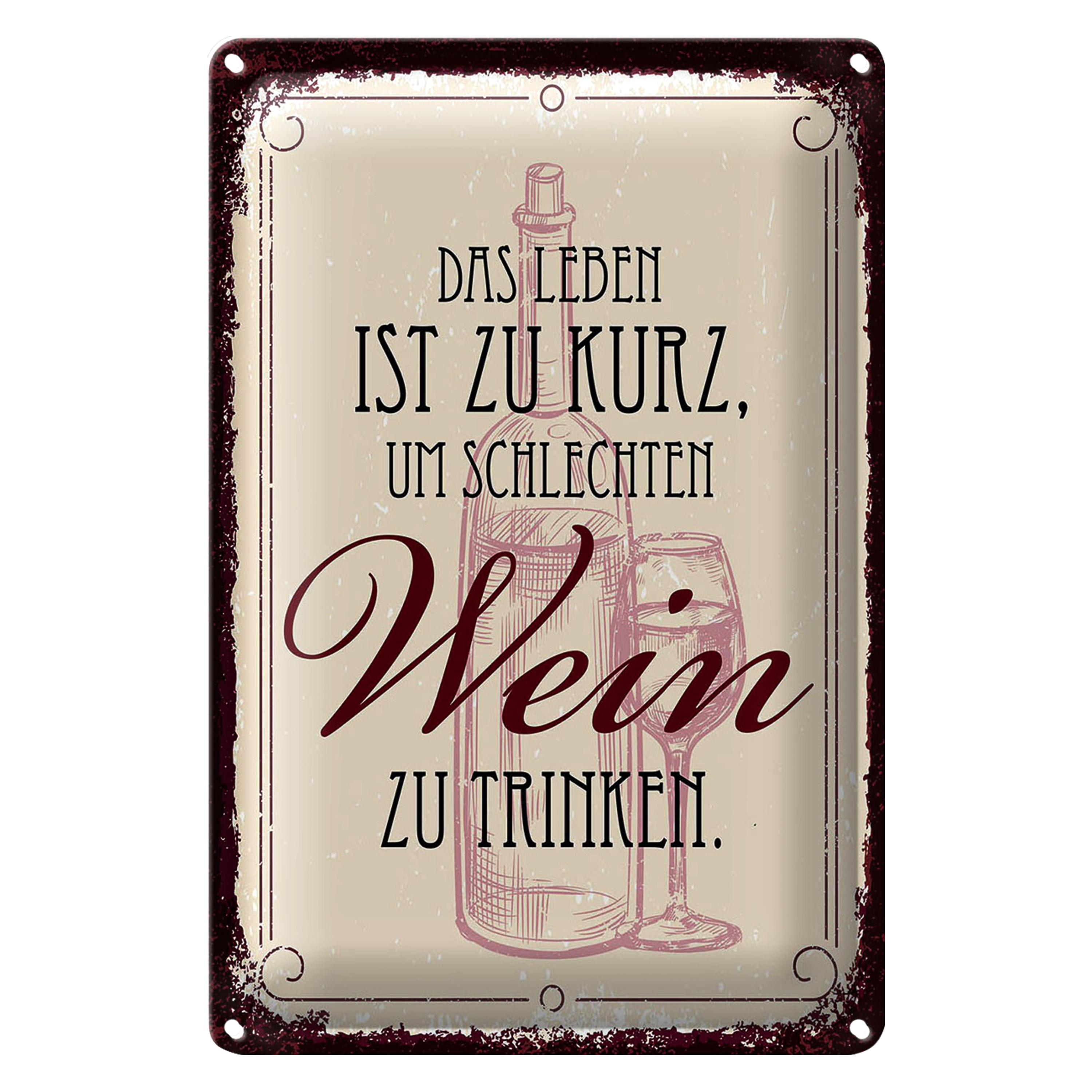 Blechschild Spruch Leben ist kurz für schlechten Wein 20x30cm