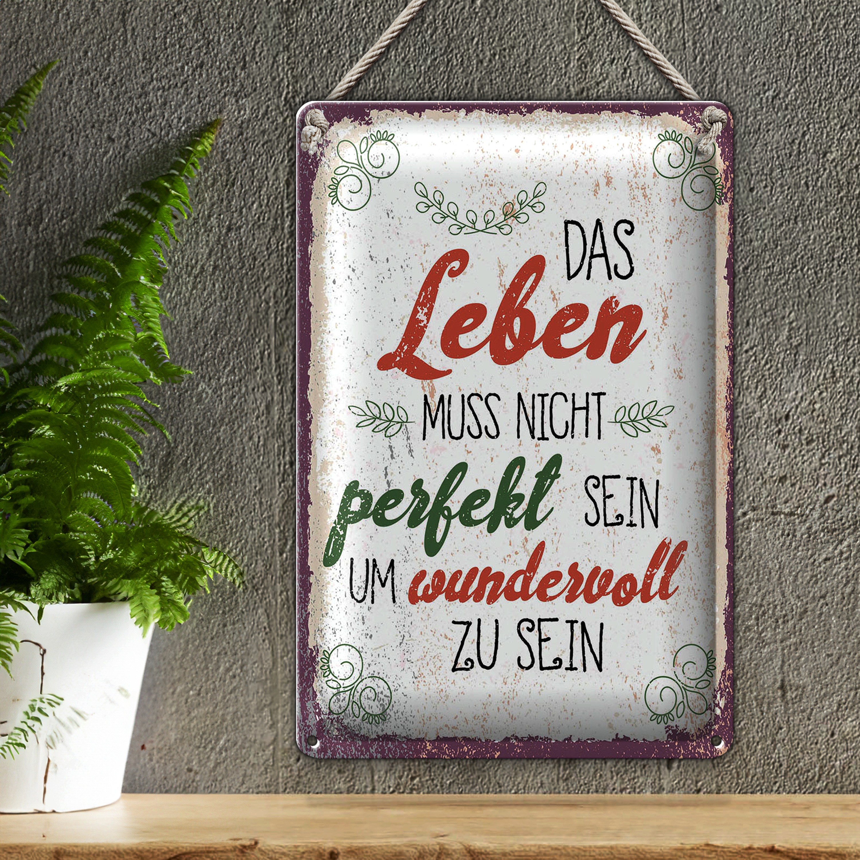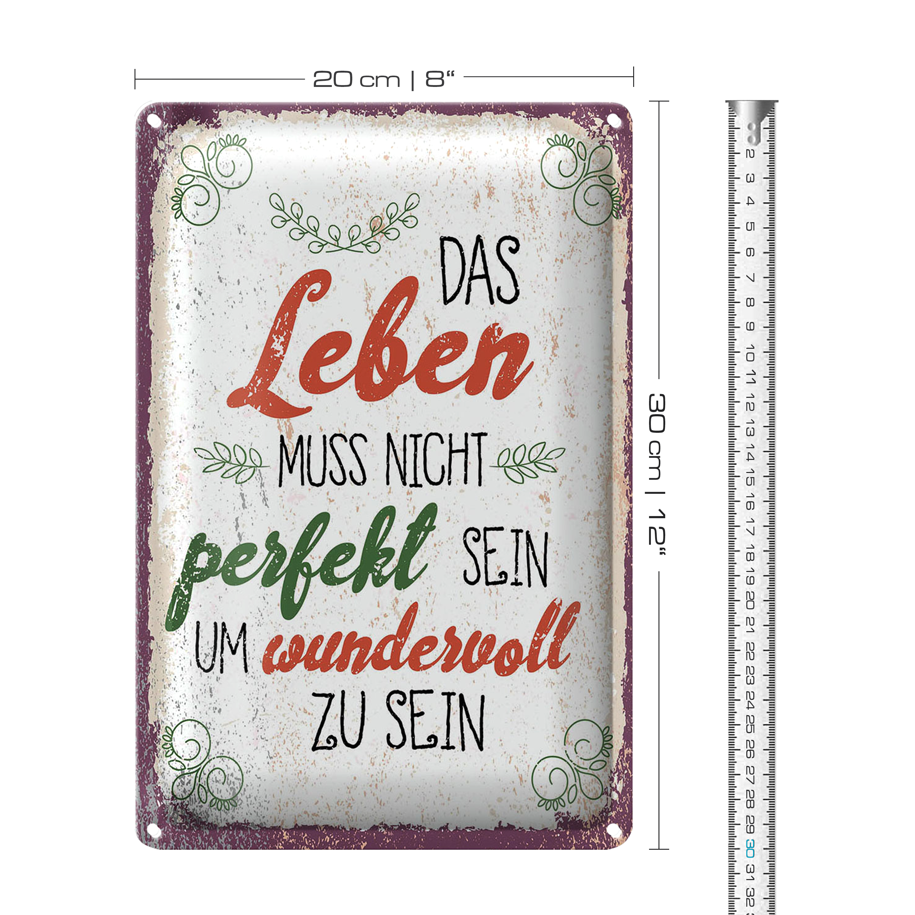 Blechschild Spruch Leben muss nicht perfekt sein um 20x30cm