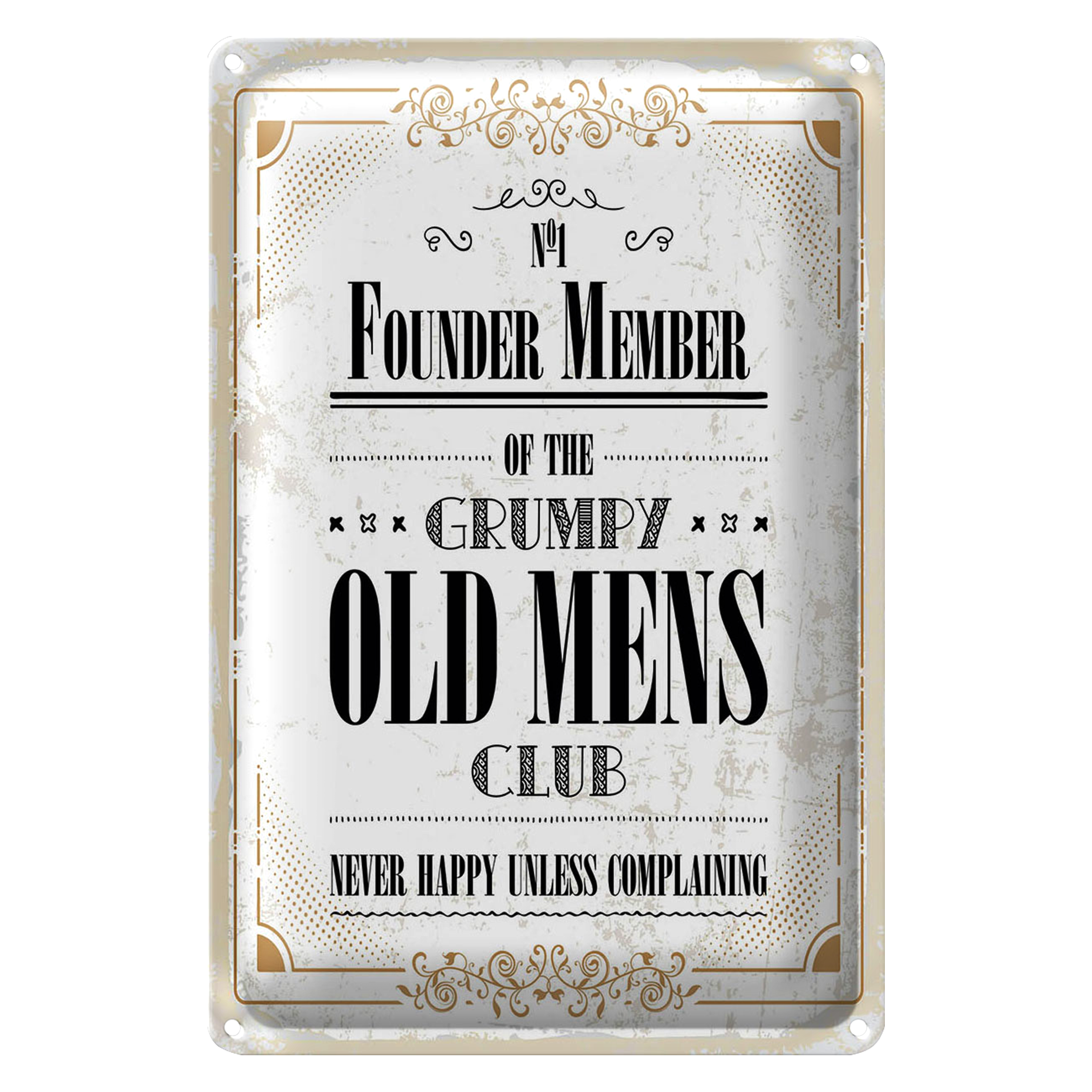 Blechschild Spruch Männer old mens Club Never Happy 20x30cm