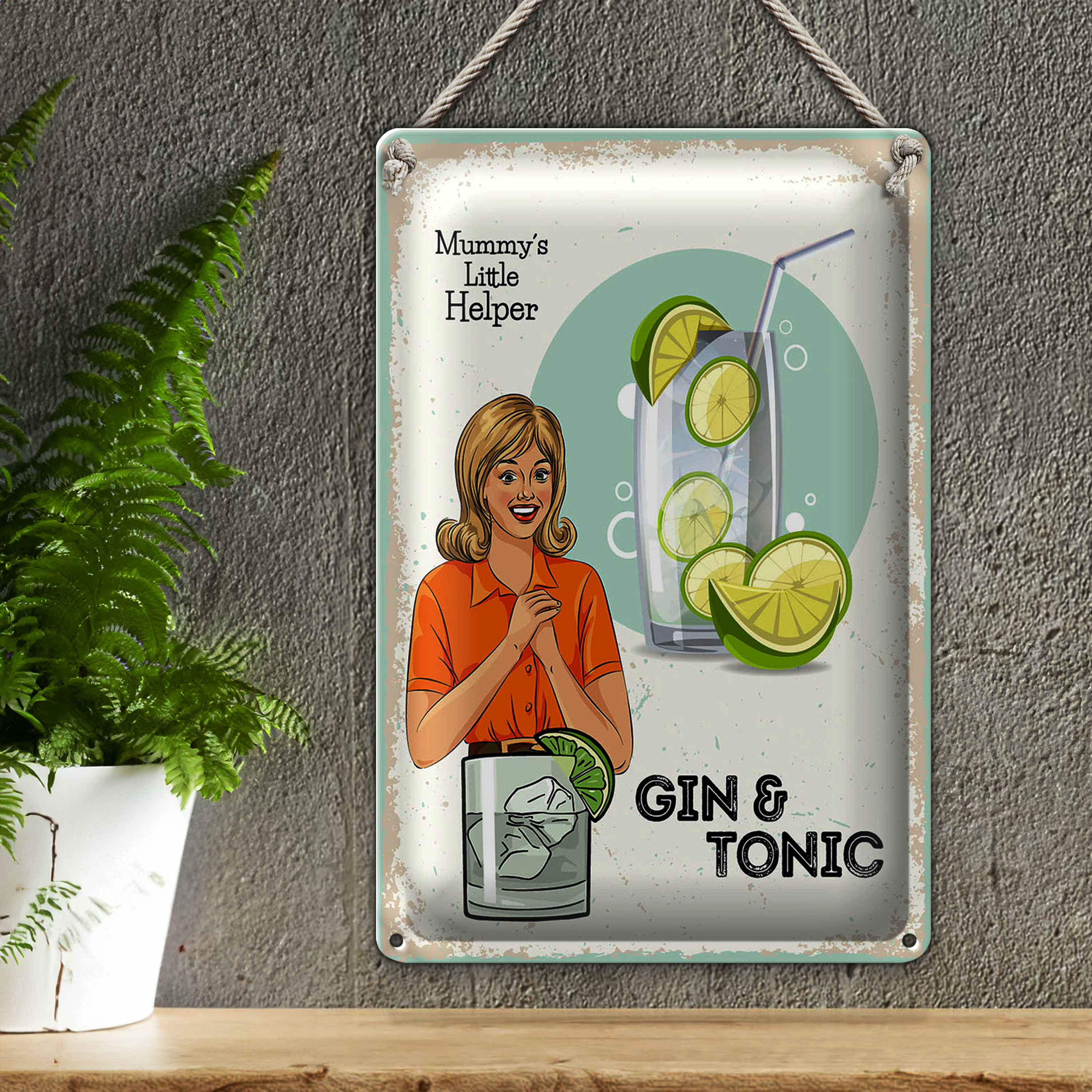 Blechschild Spruch Mummy´s little Helper Gin & Tonic 20x30cm