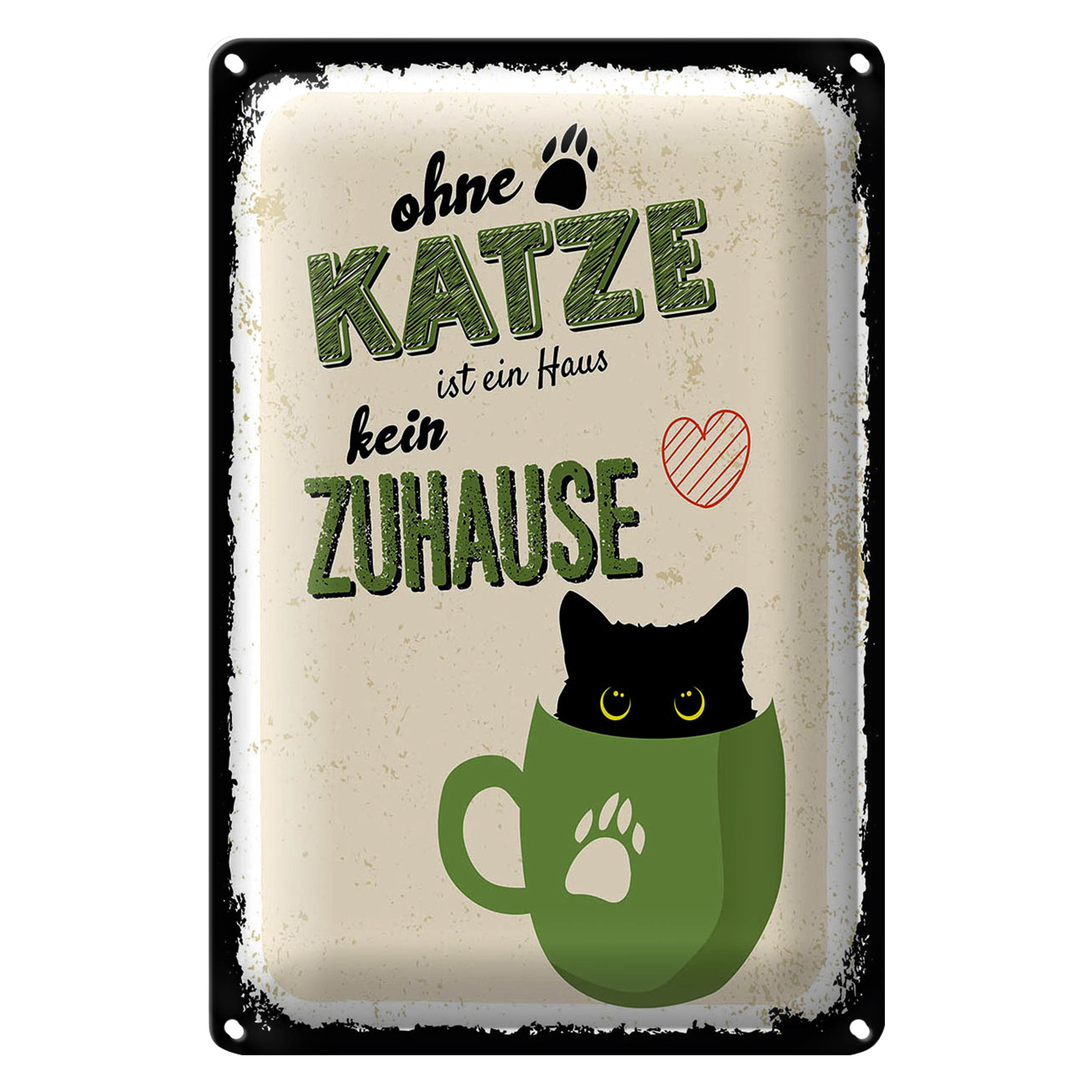 Blechschild Spruch Ohne Katze ist Haus kein Zuhause 20x30cm