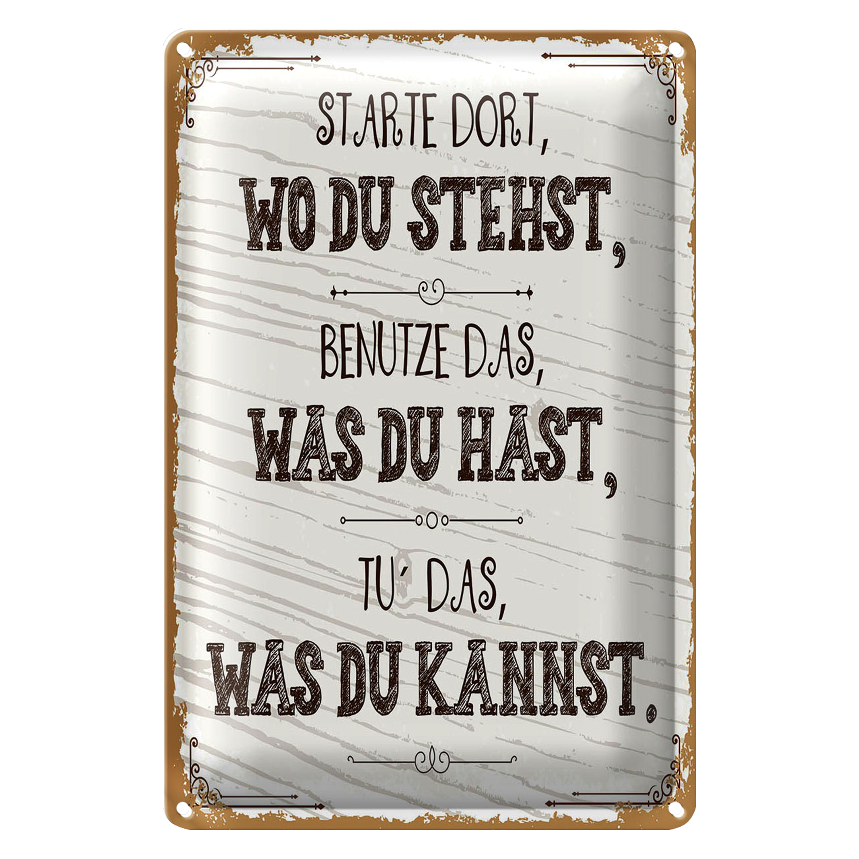 Blechschild Spruch Starte dort wo du stehst, benutze 20x30cm
