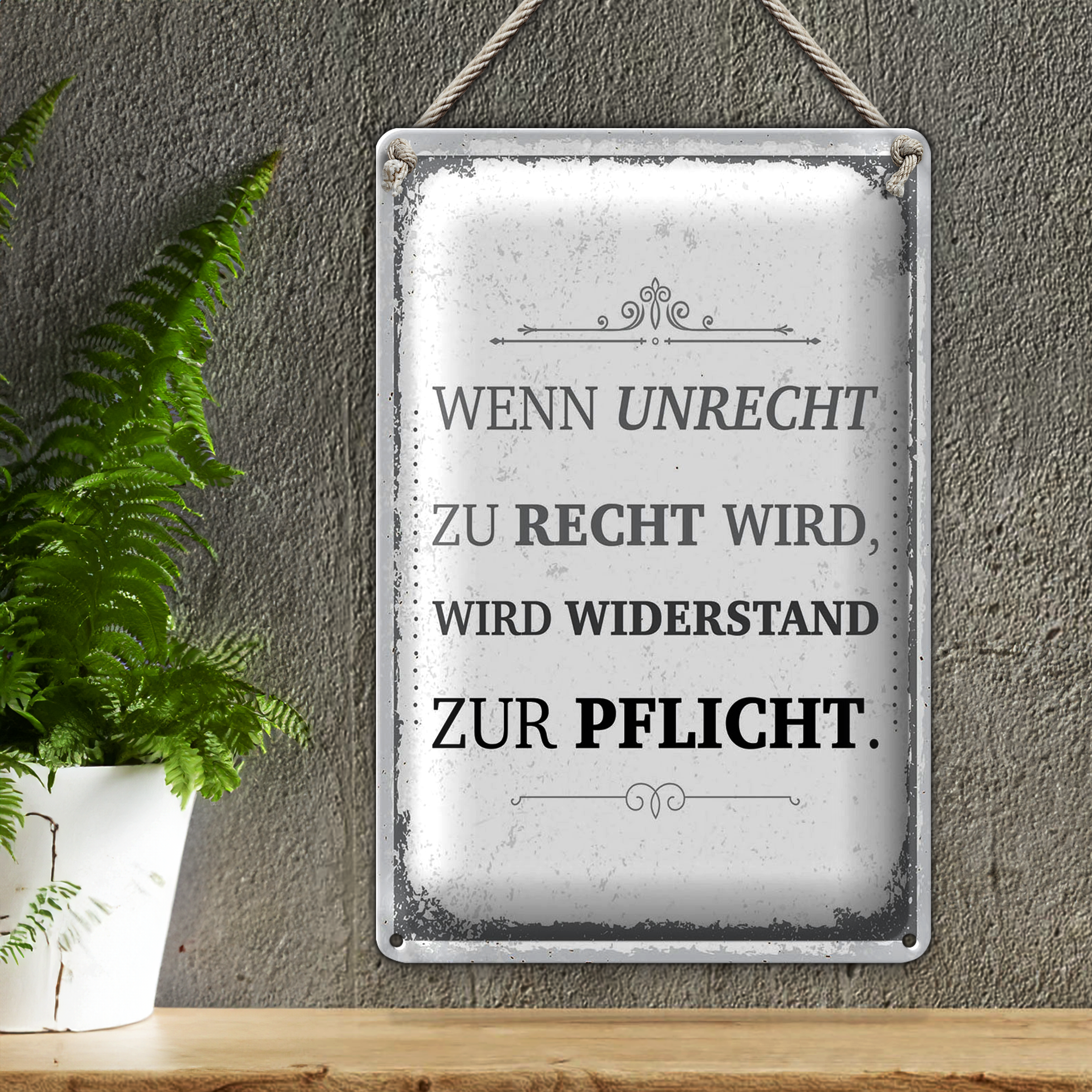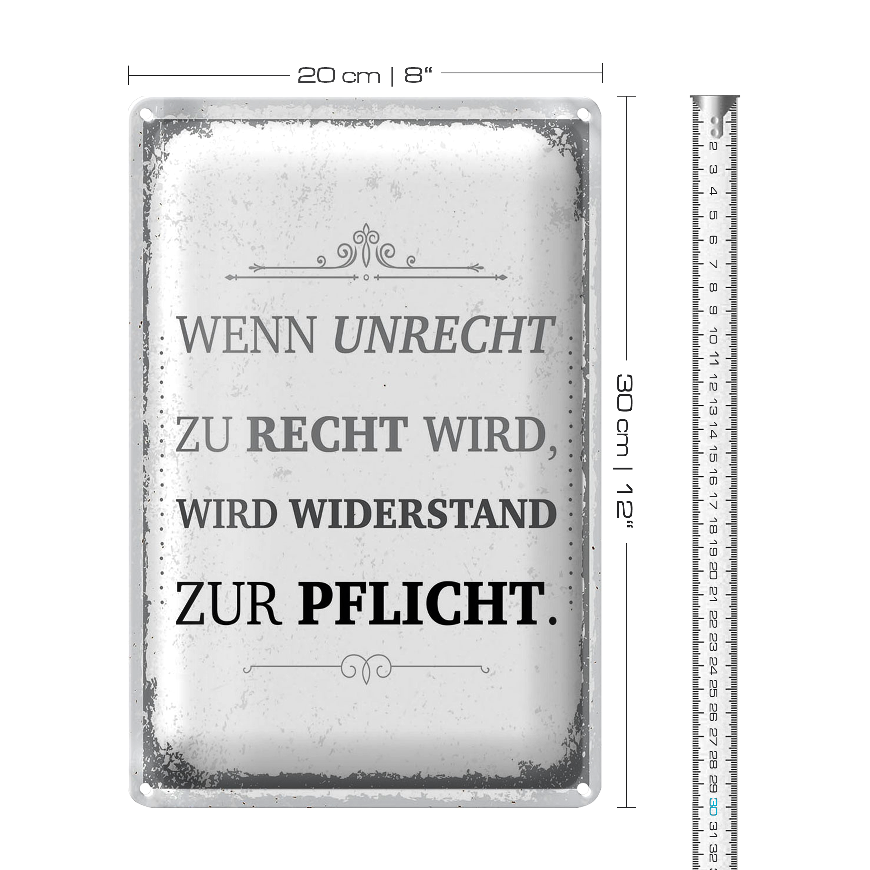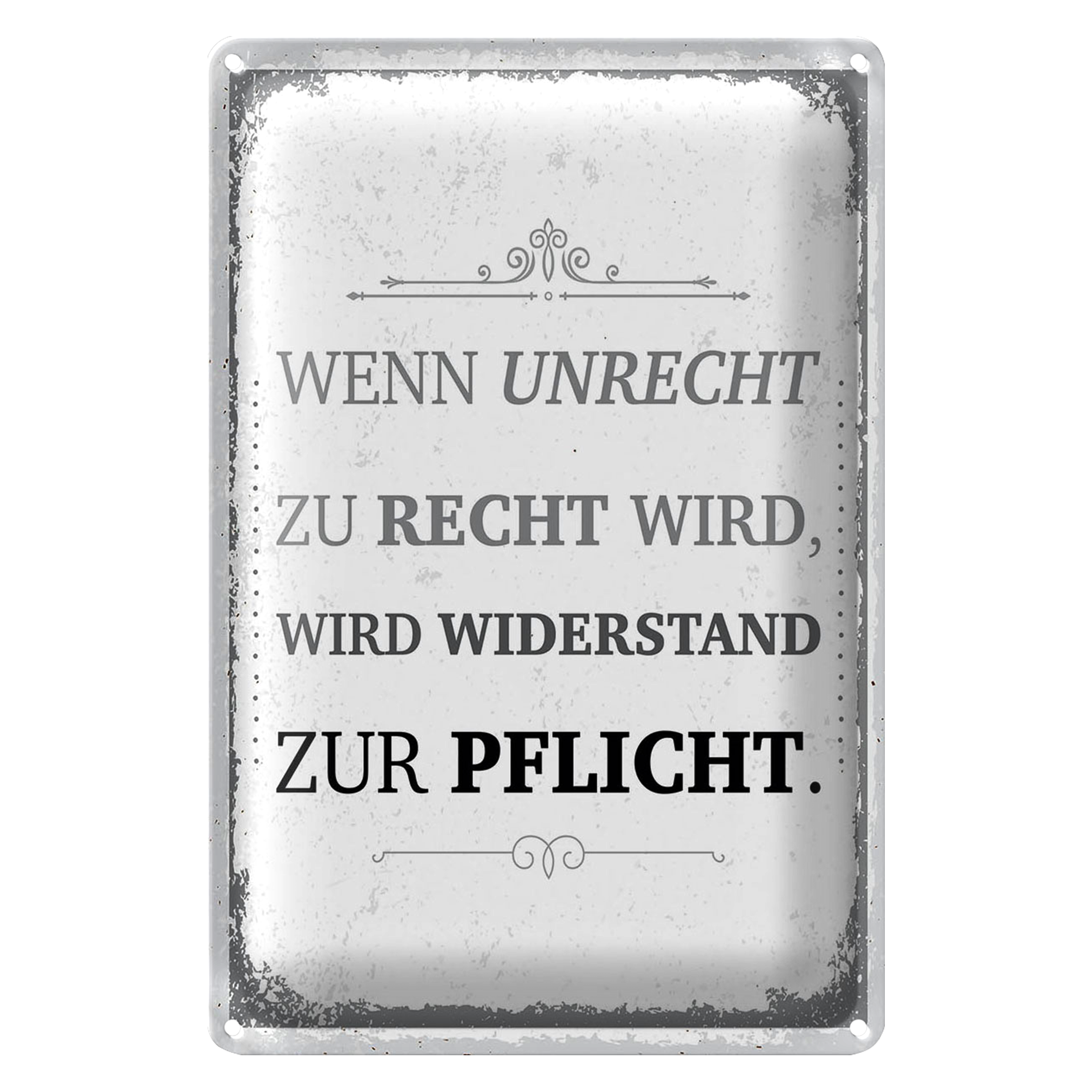 Blechschild Spruch Wenn Unrecht zu Recht wird 20x30cm