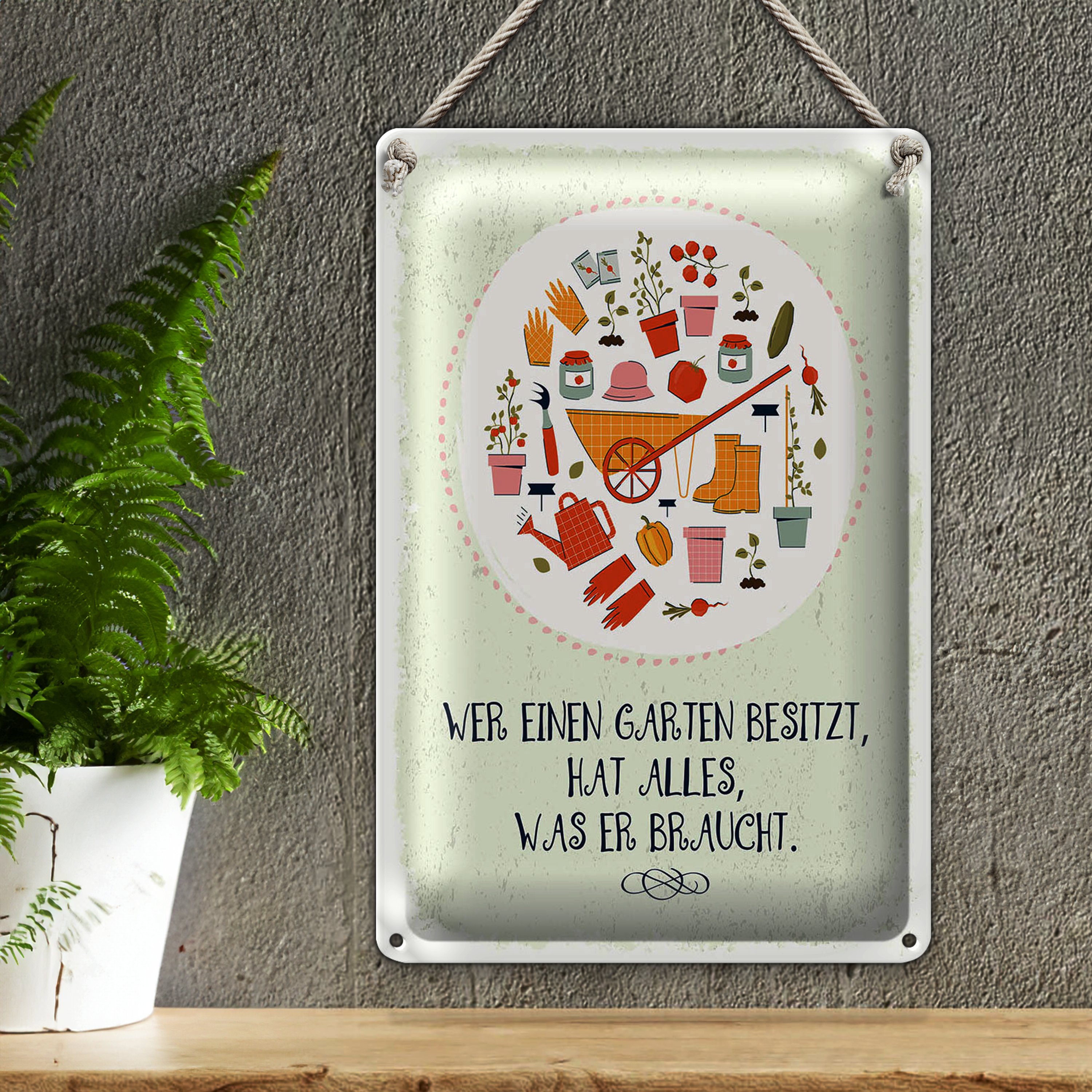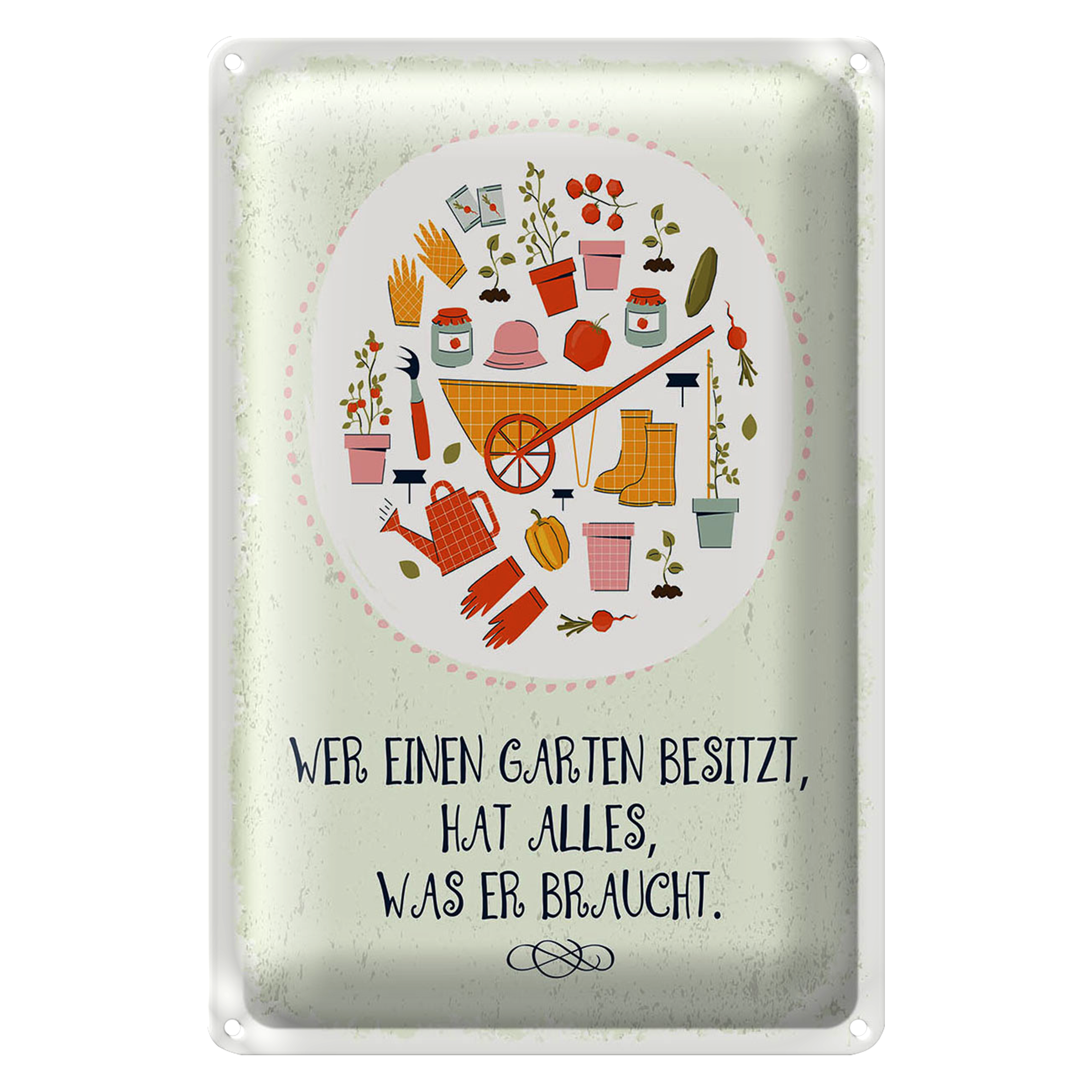 Blechschild Spruch Wer Garten besitzt hat alles 20x30cm