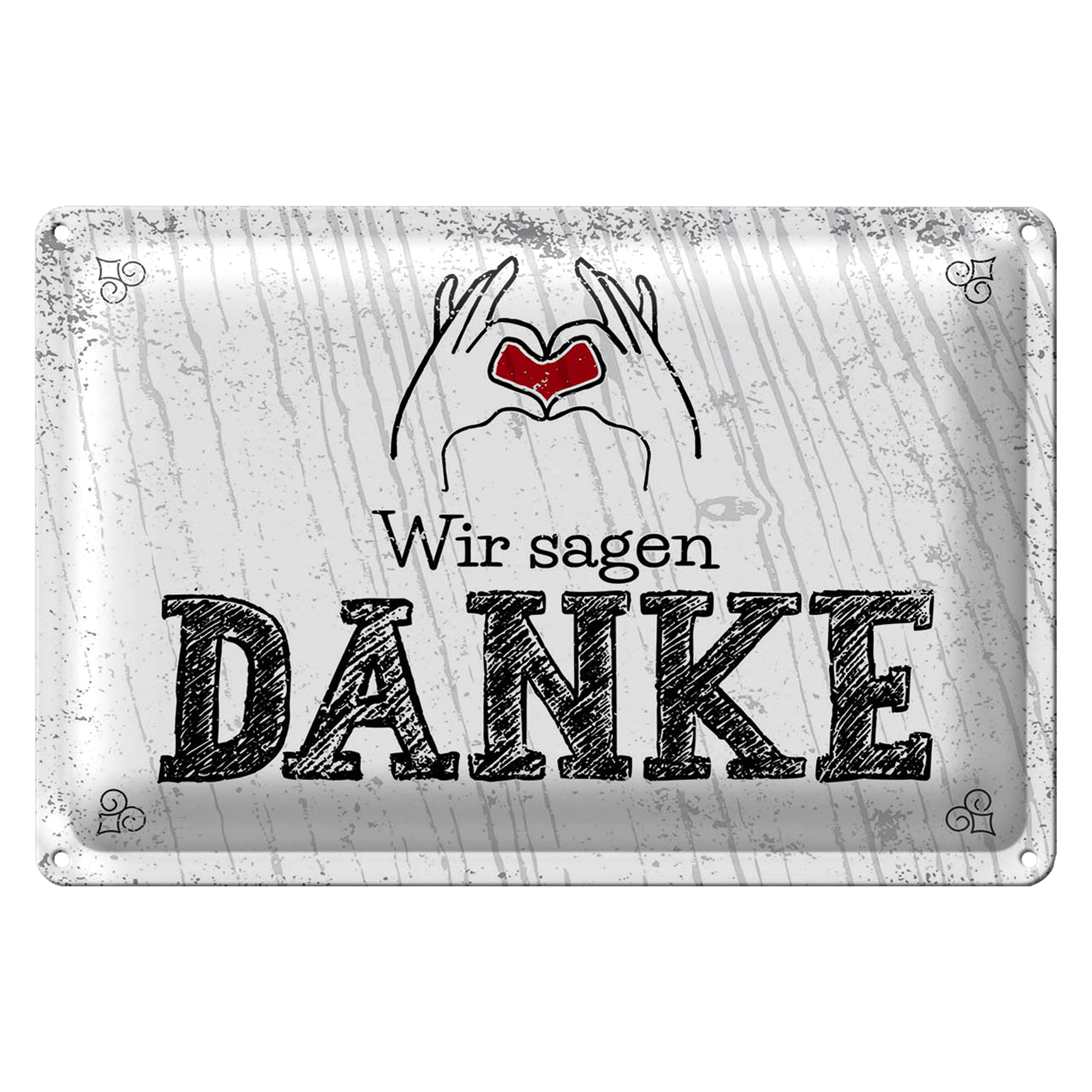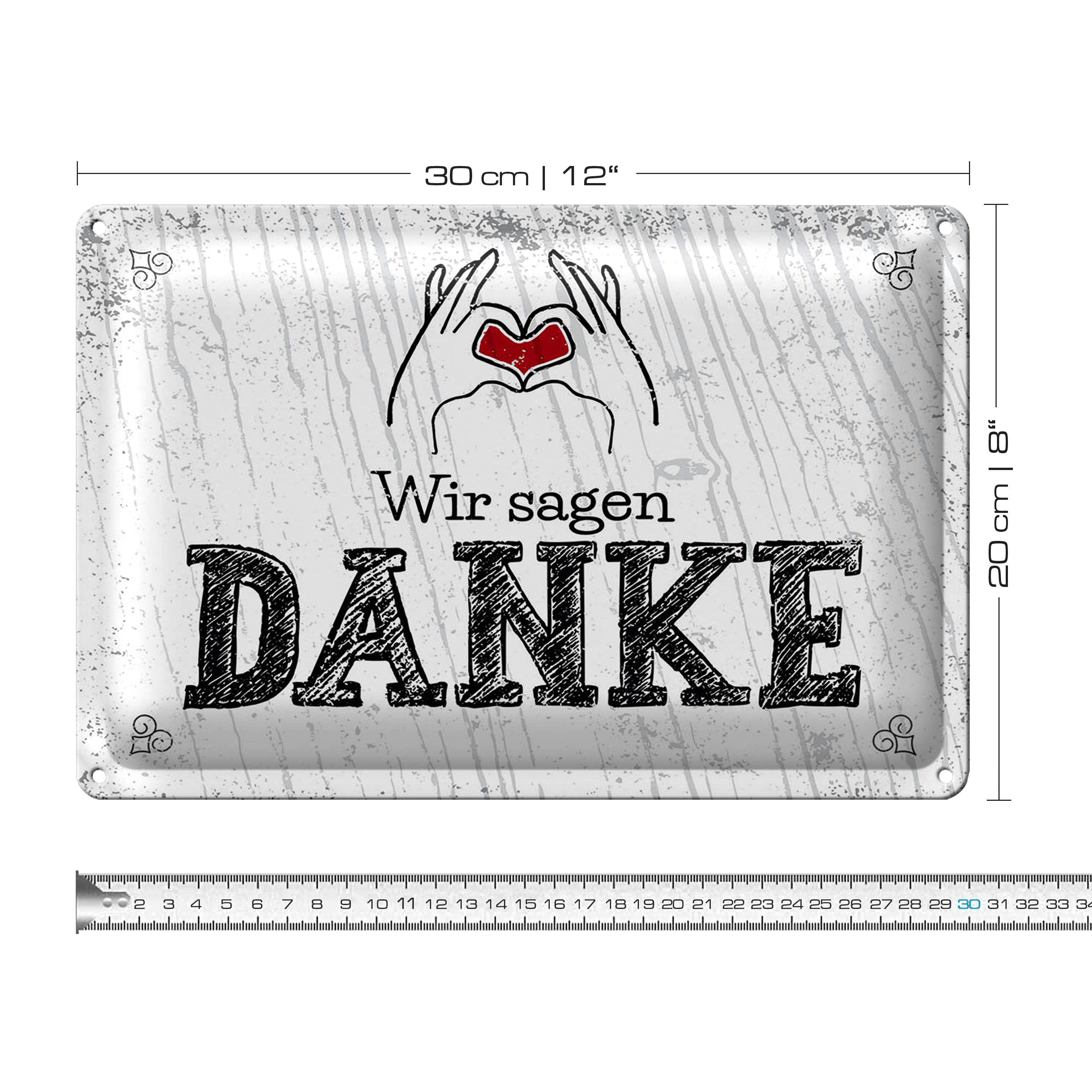 Blechschild Spruch wir sagen danke Herz 30x20cm