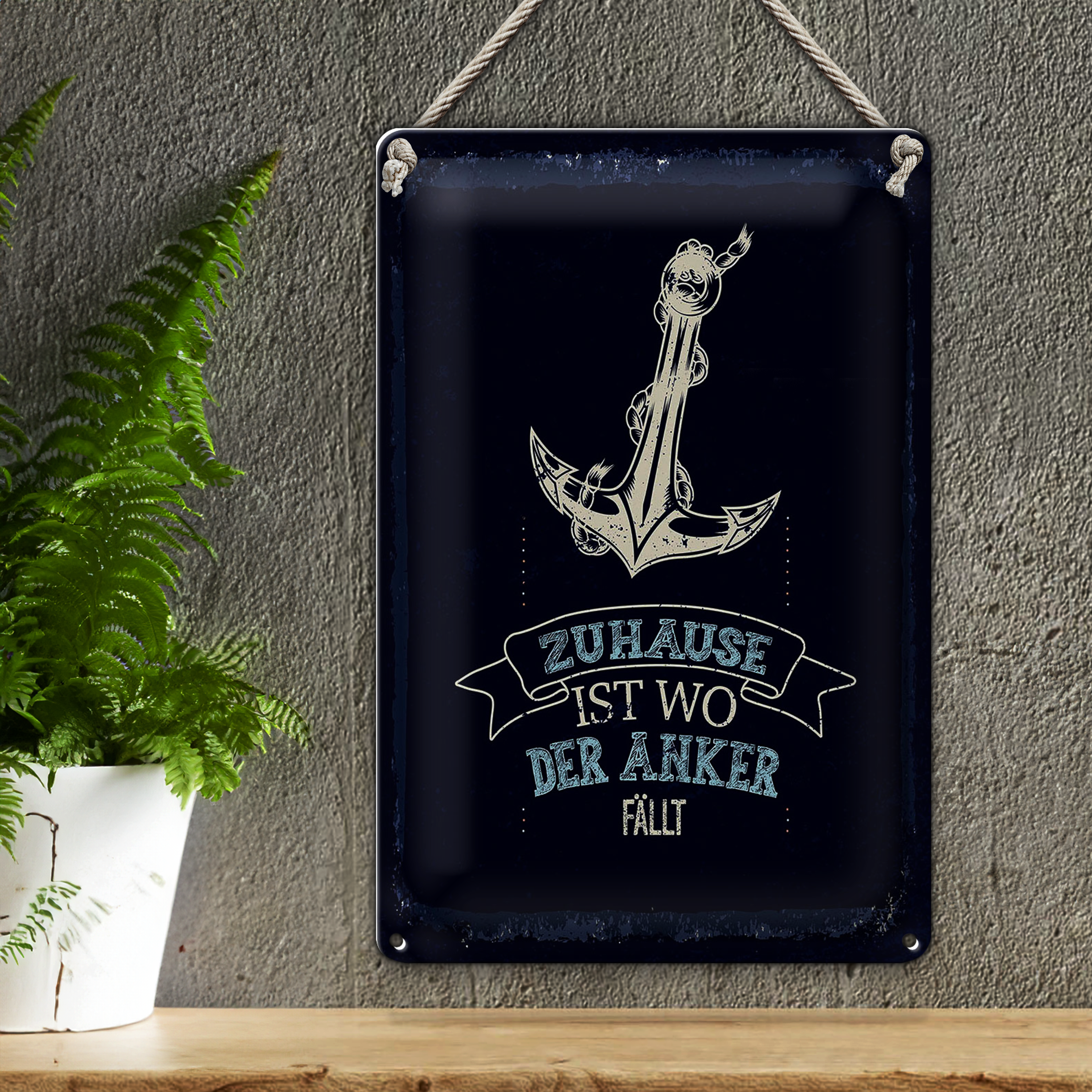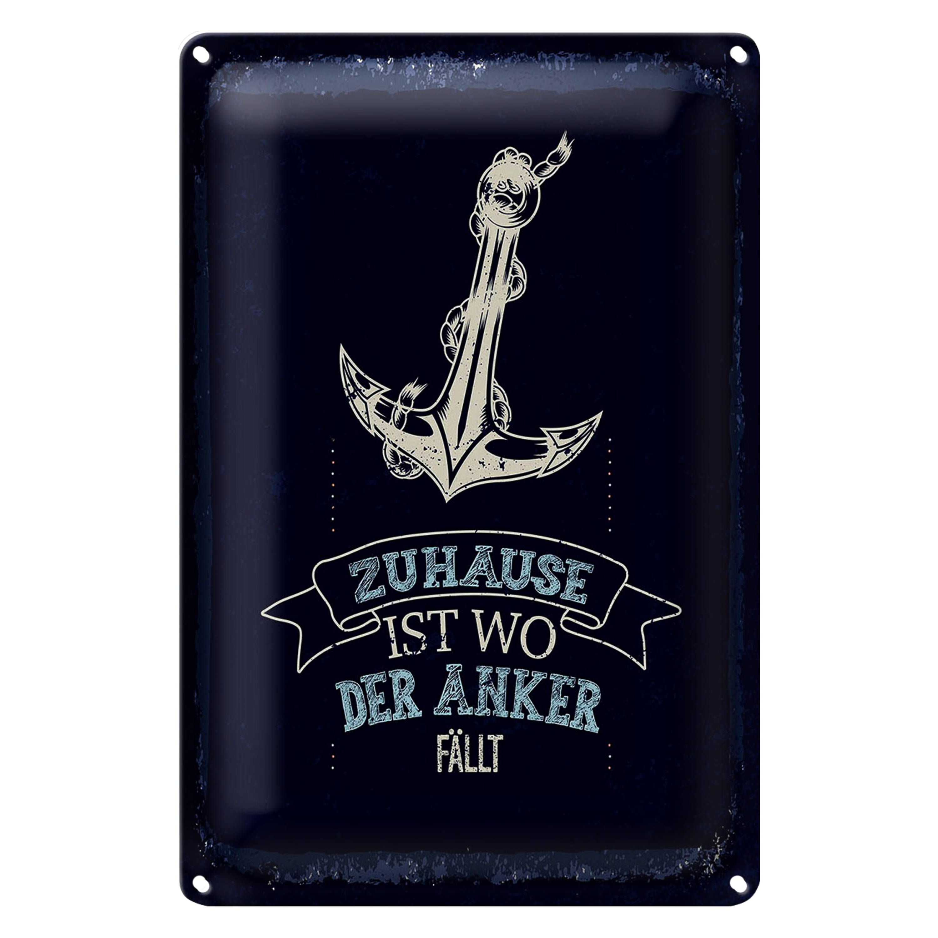 Blechschild Spruch Zuhause ist wo der Anker fällt 20x30cm