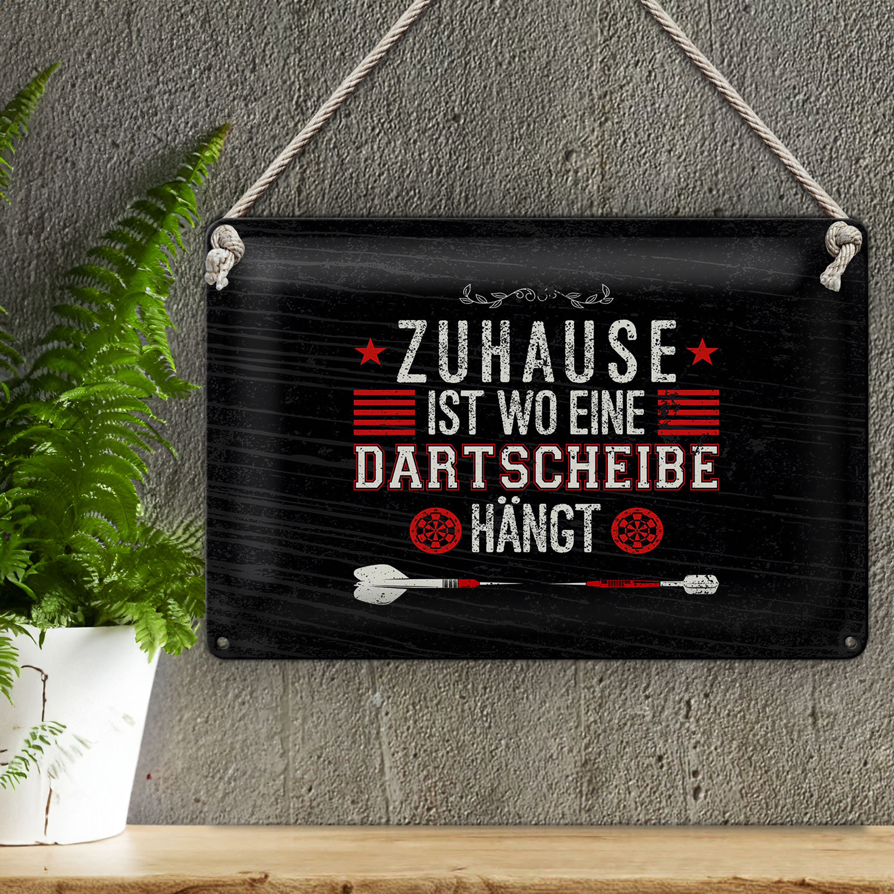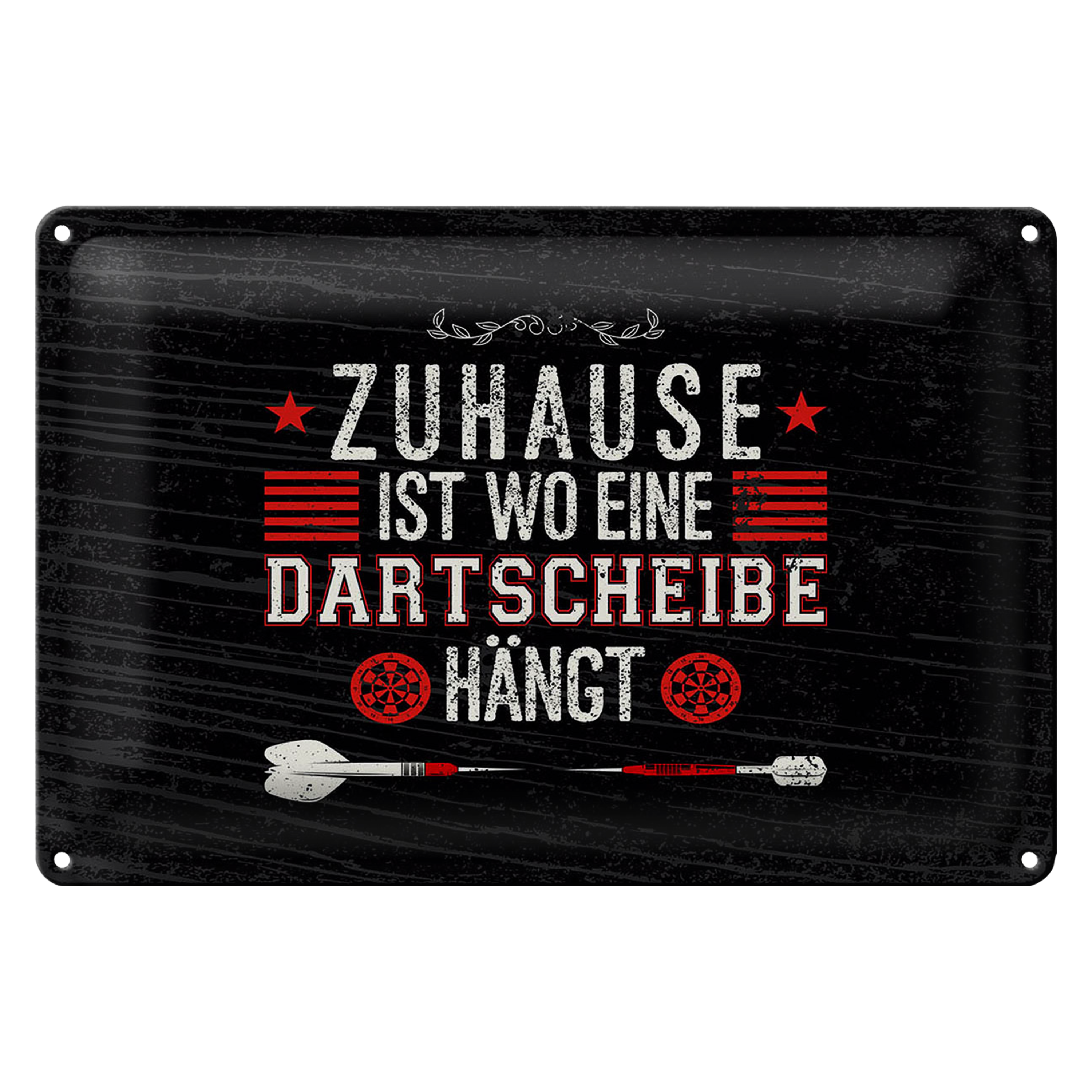 Blechschild Spruch Zuhause ist wo eine Dartscheibe 30x20cm