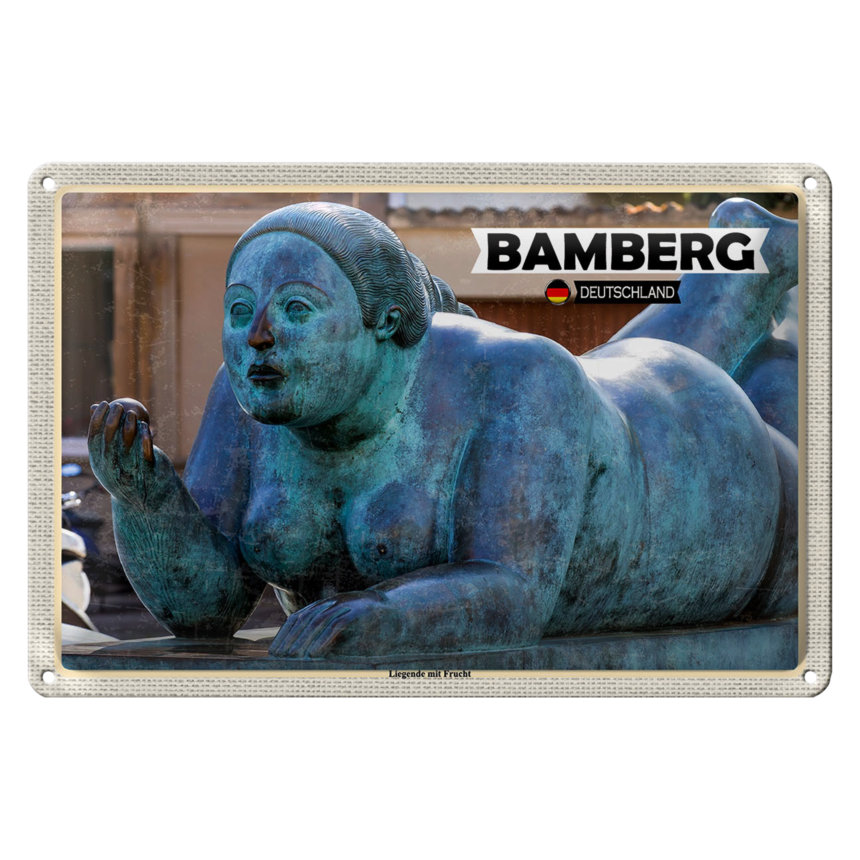 Blechschild Städte Bamberg Liegende mit Frucht 30x20cm