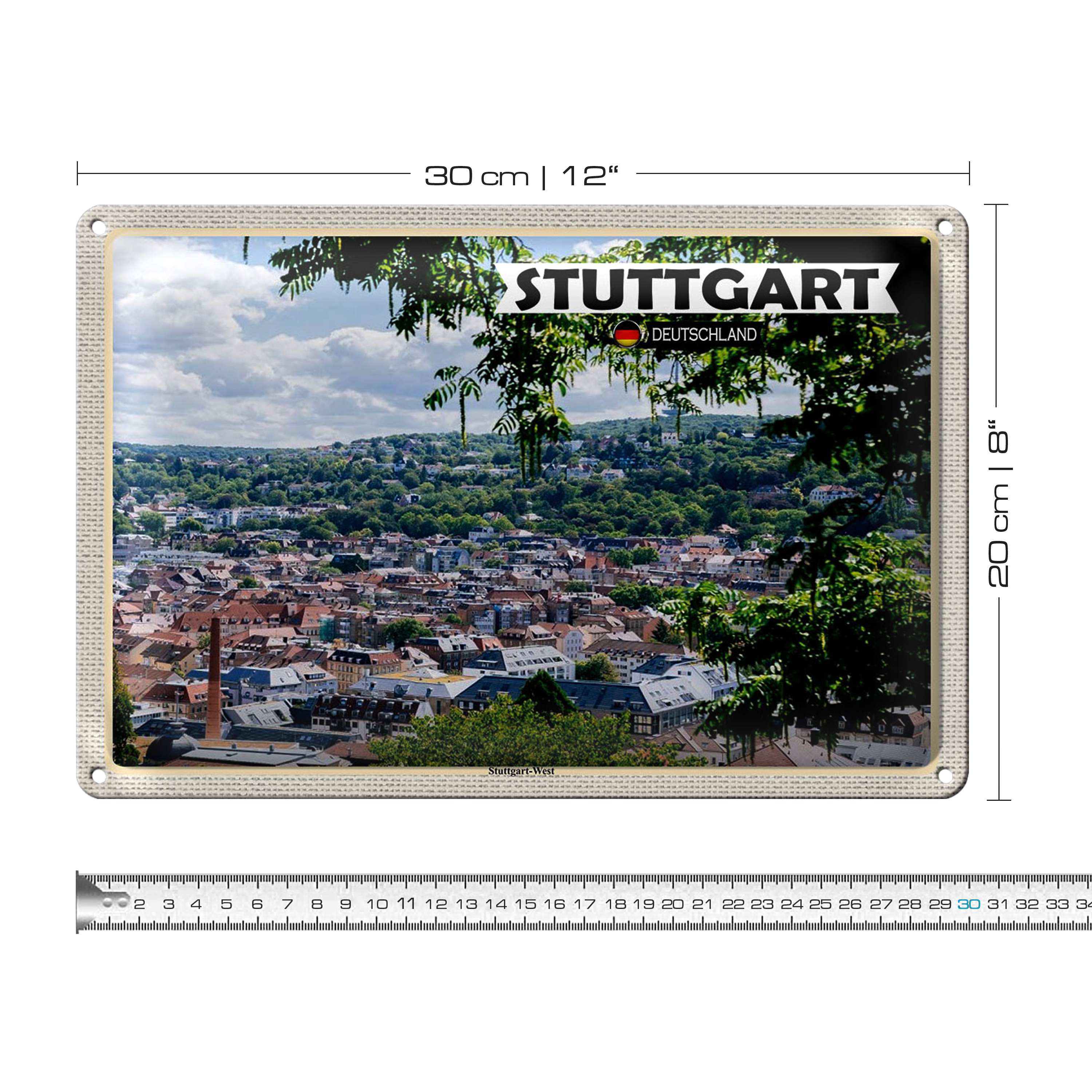 Blechschild Städte Blick auf Stadt Stuttgart West 30x20cm