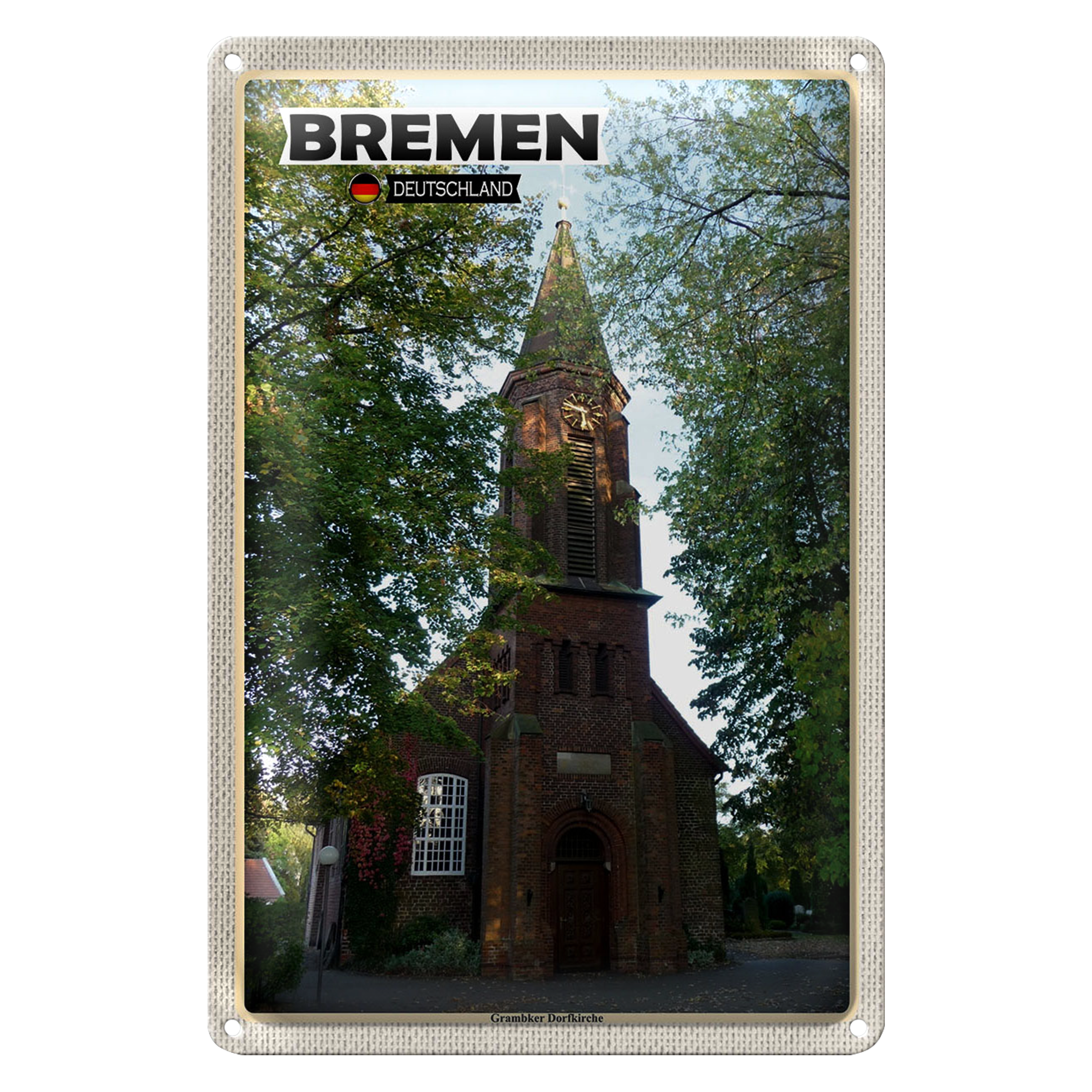 Blechschild Städte Bremen Grambiker Dorfkirche 20x30cm