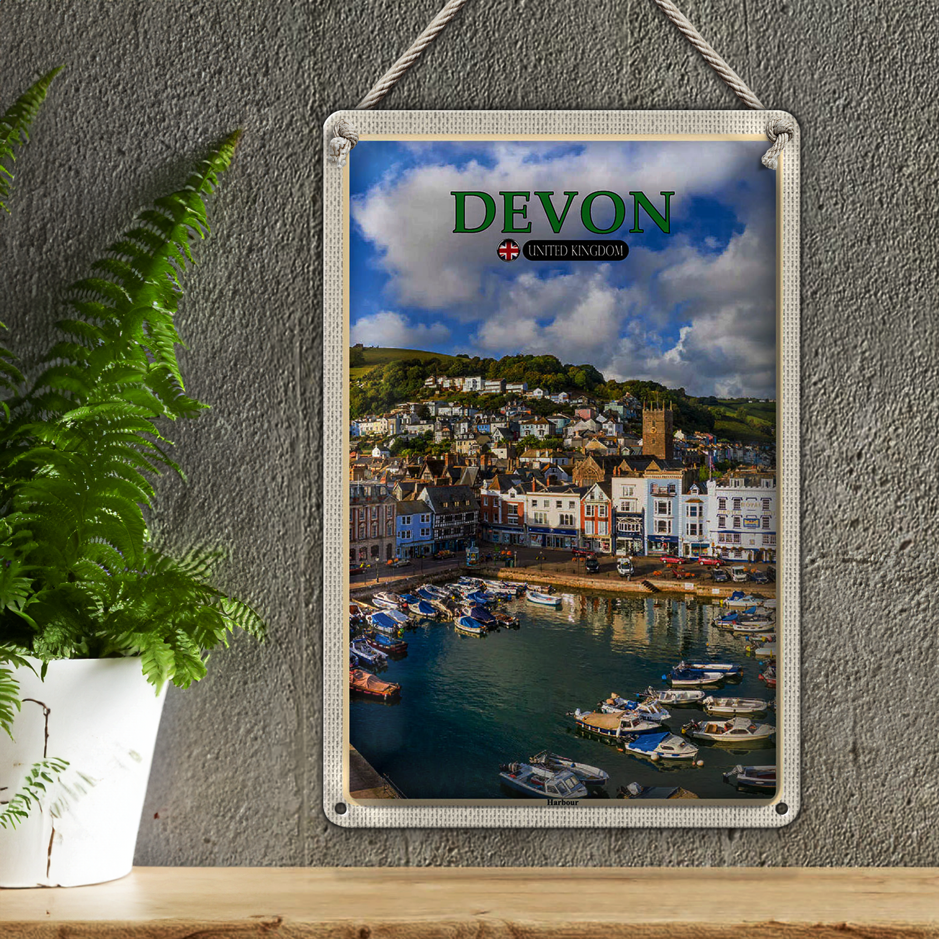 Blechschild Städte Devon United Kingdom Harbour 20x30cm