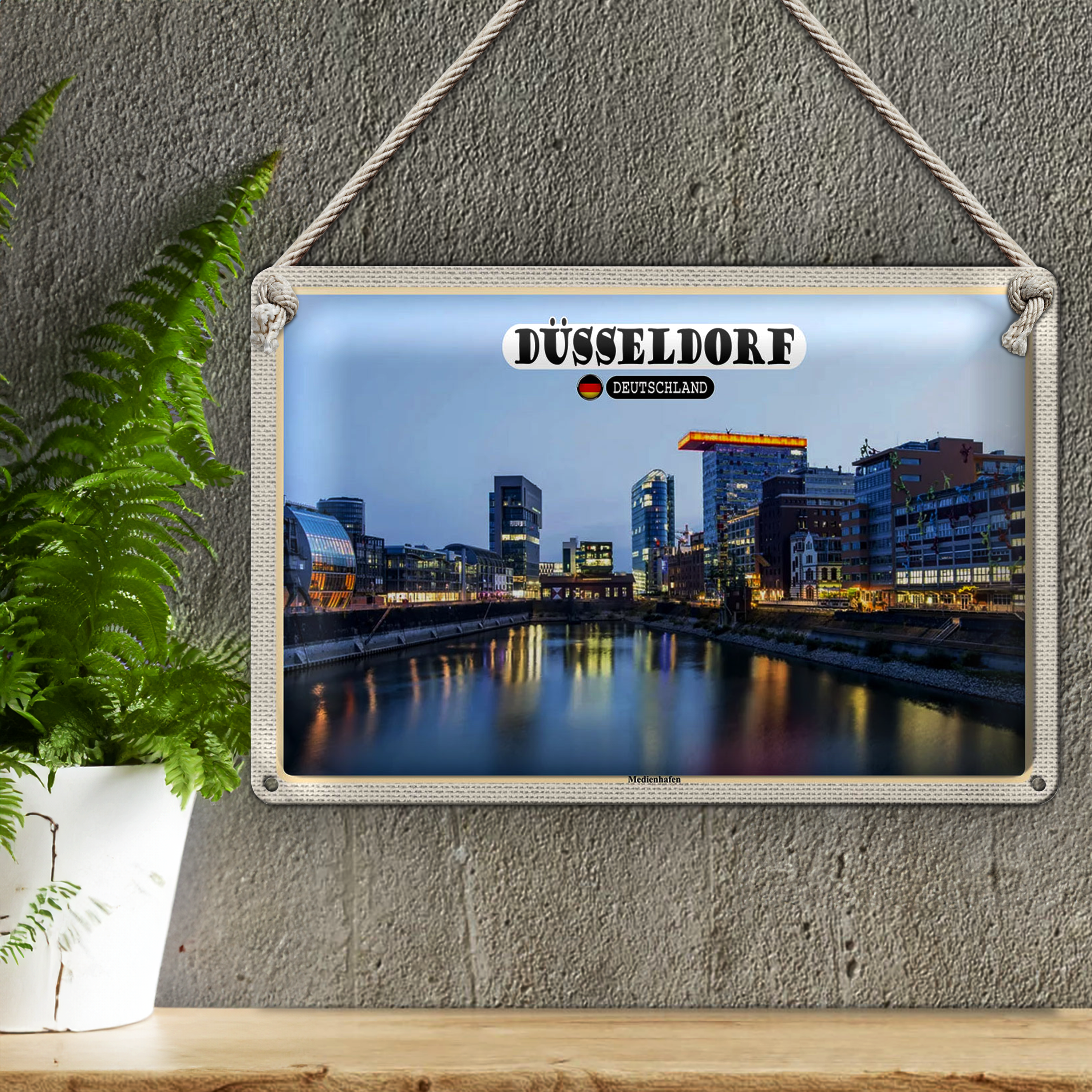 Blechschild Städte Düsseldorf Medienhafen Baukunst 30x20cm