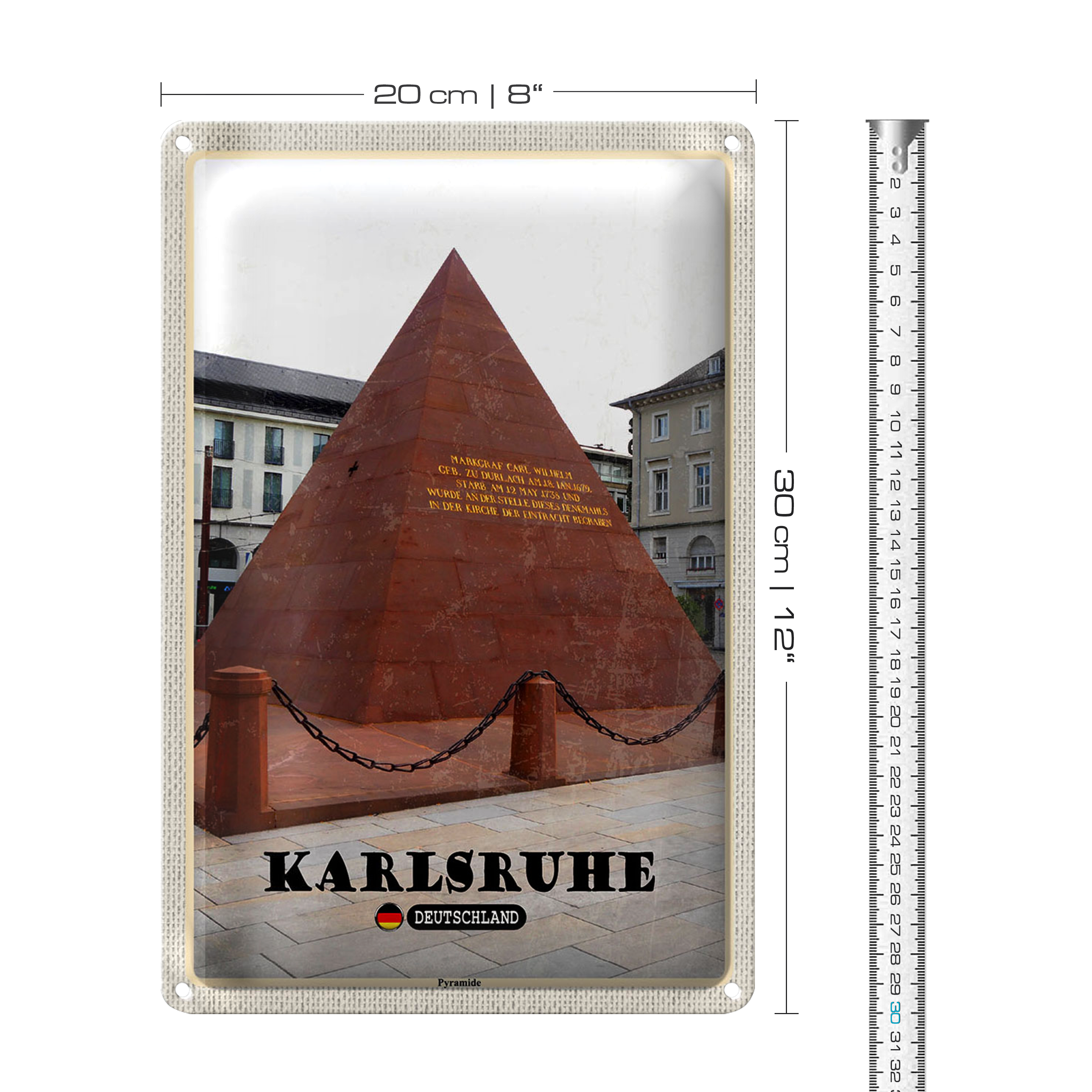 Blechschild Städte Karlsruhe Pyramide Architektur 20x30cm