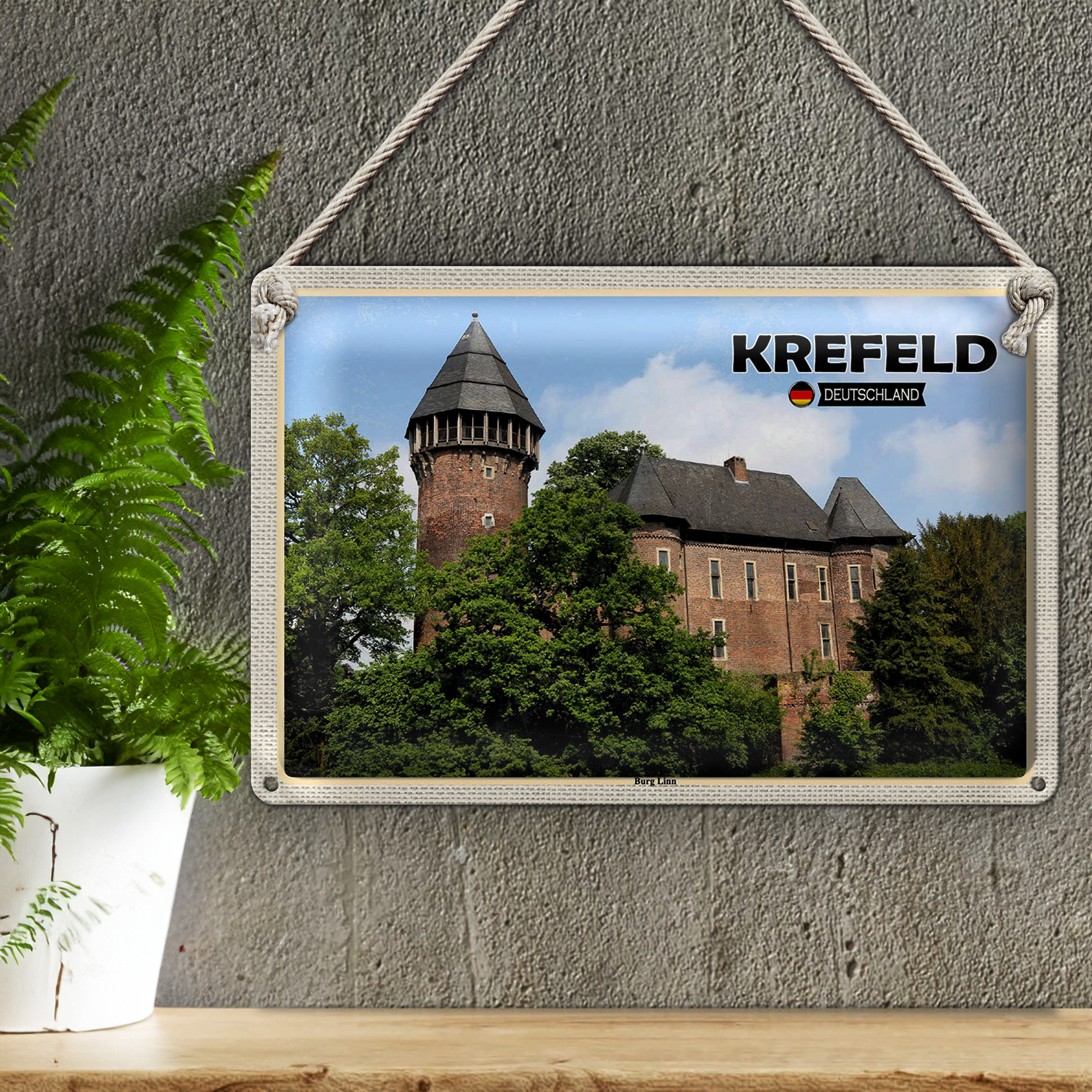 Blechschild Städte Krefeld Burg Linn Schloss 30x20cm