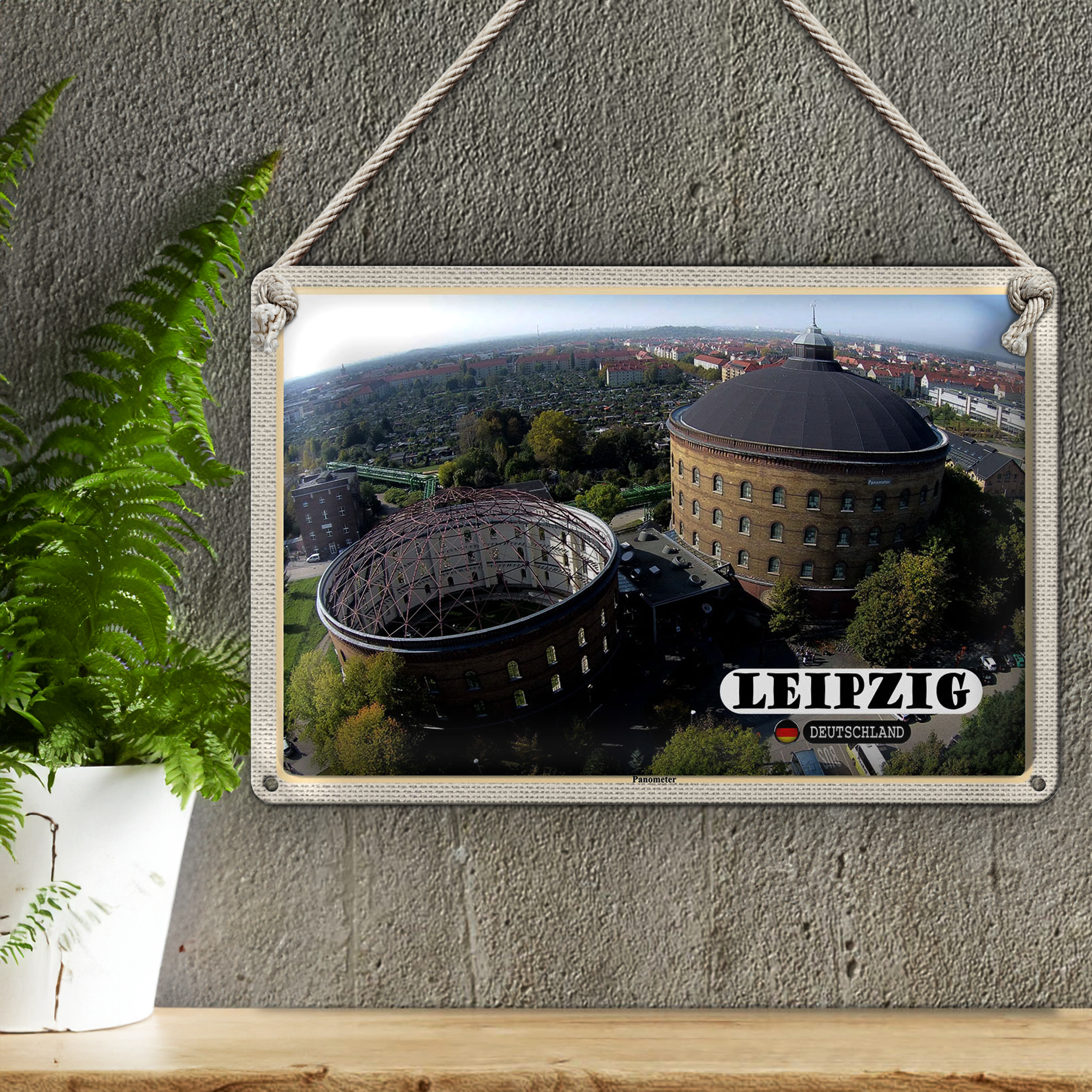 Blechschild Städte Leipzig Blick auf Panometer 30x20cm