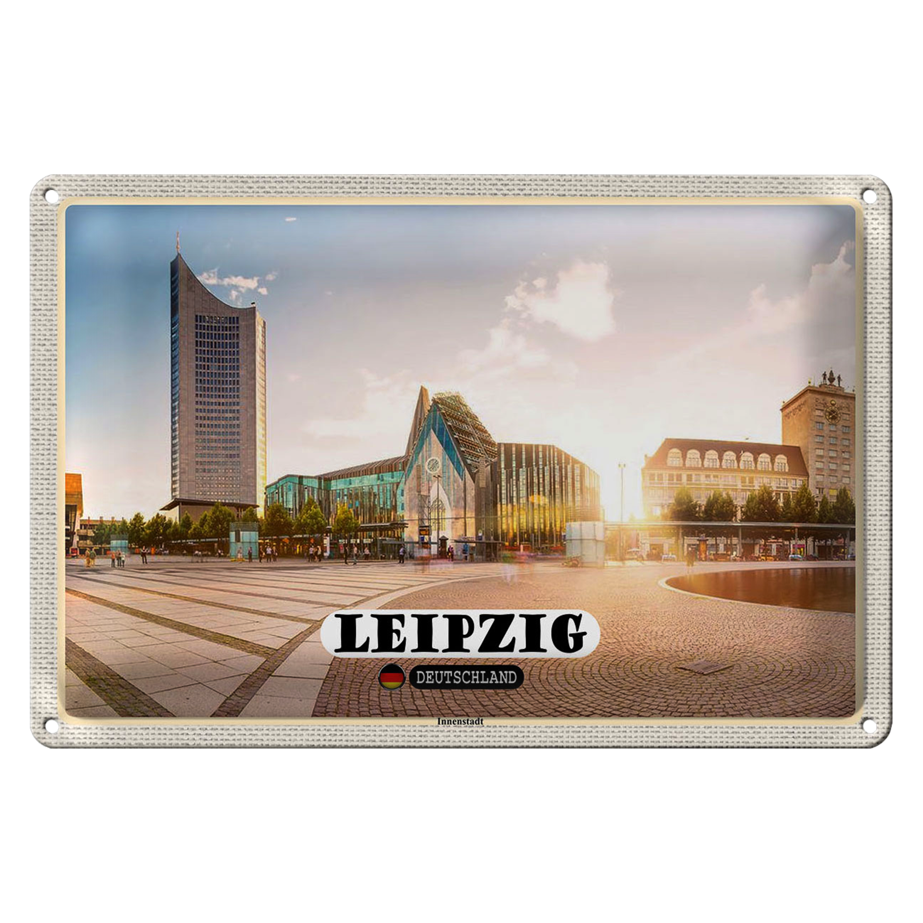Blechschild Städte Leipzig Innenstadt Teich Gebäude 30x20cm