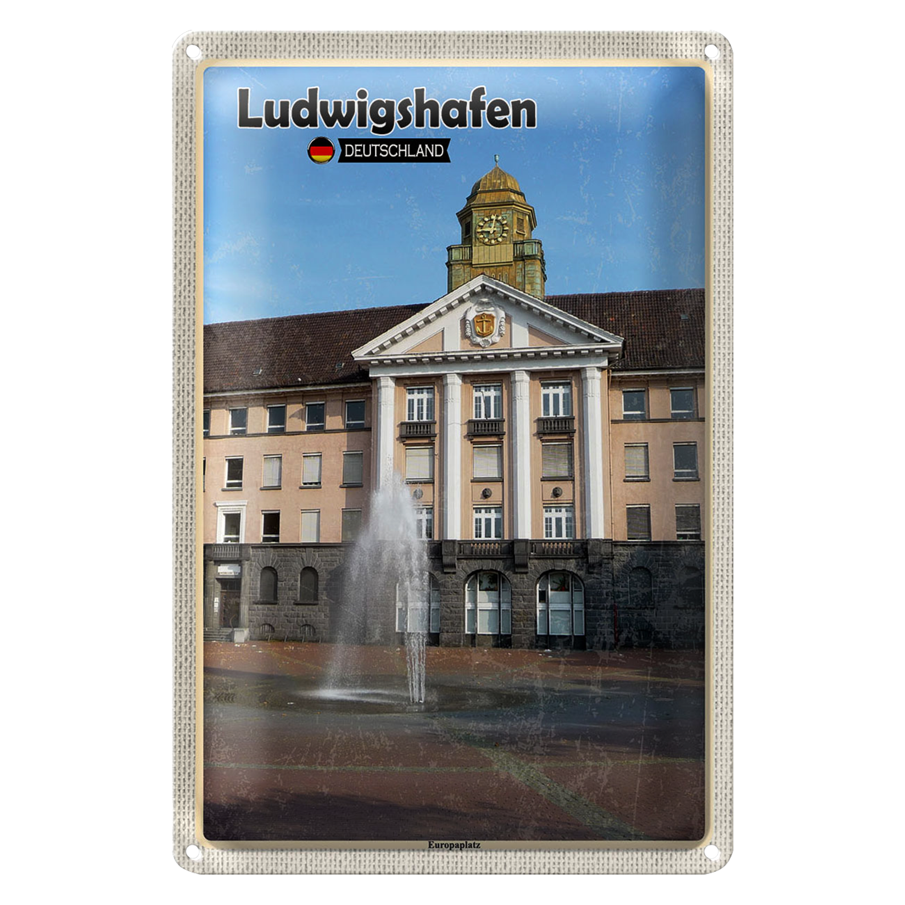 Blechschild Städte Ludwigshafen Europaplatz Brunnen 20x30cm