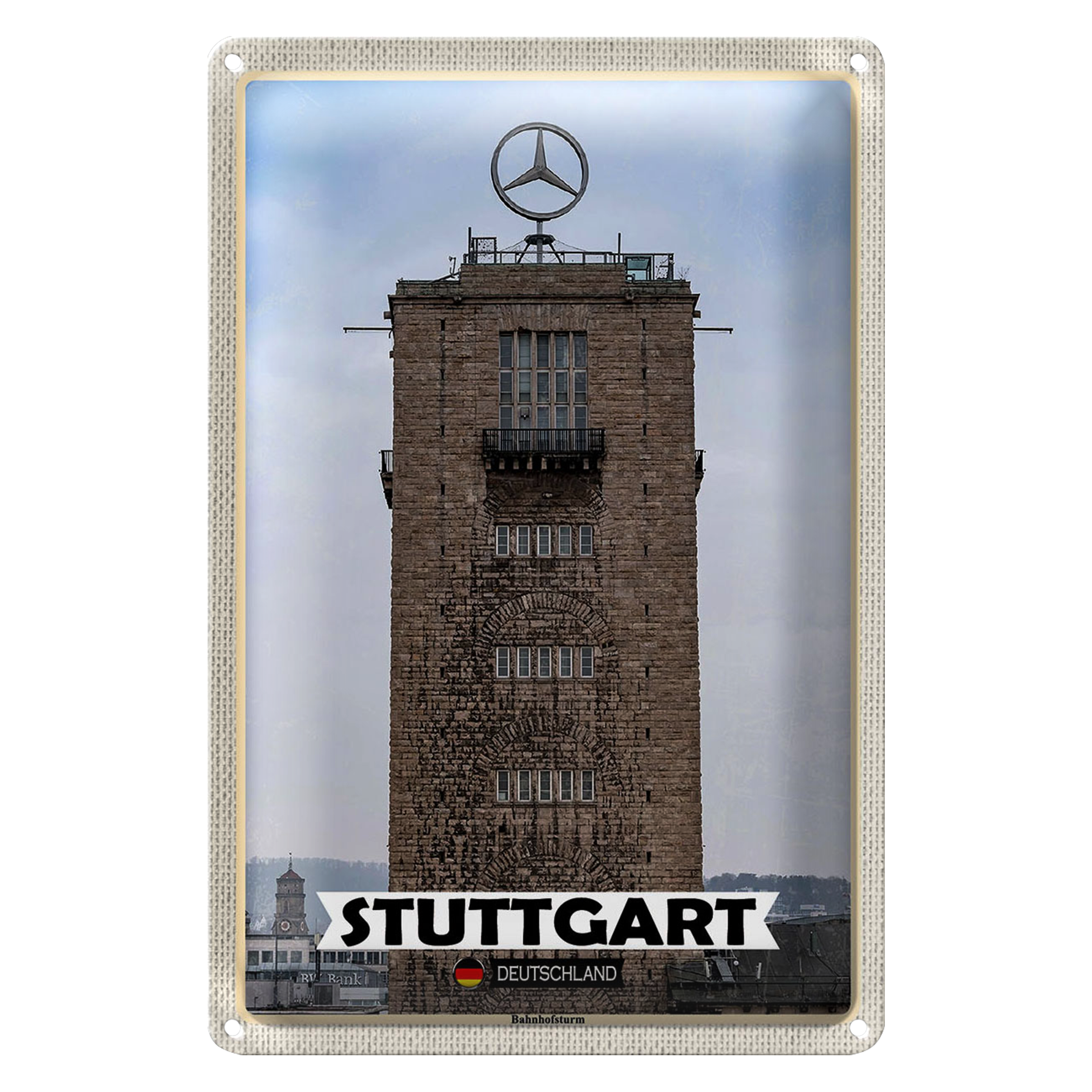Blechschild Städte Stuttgart Bahnhofsturm Architektur 20x30cm