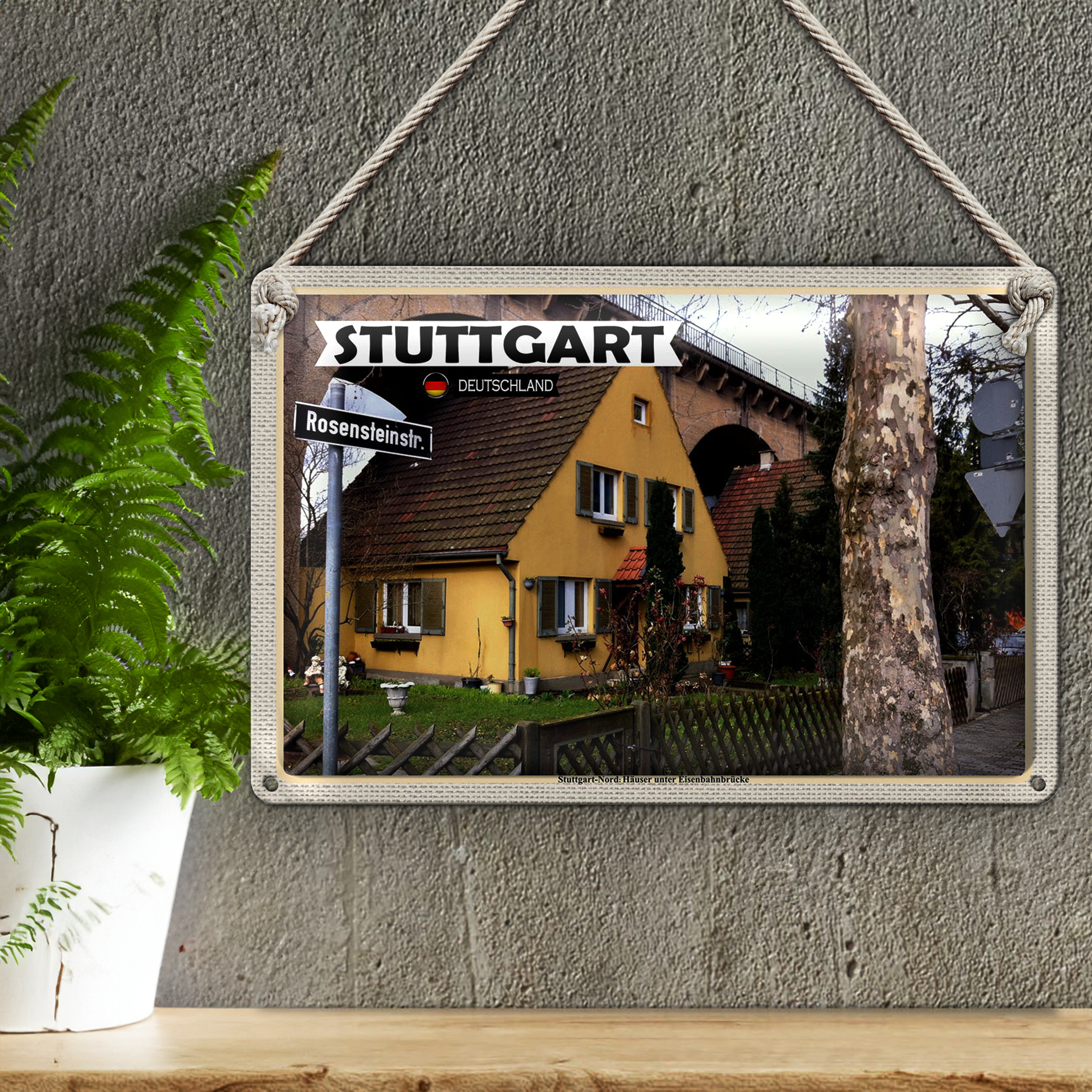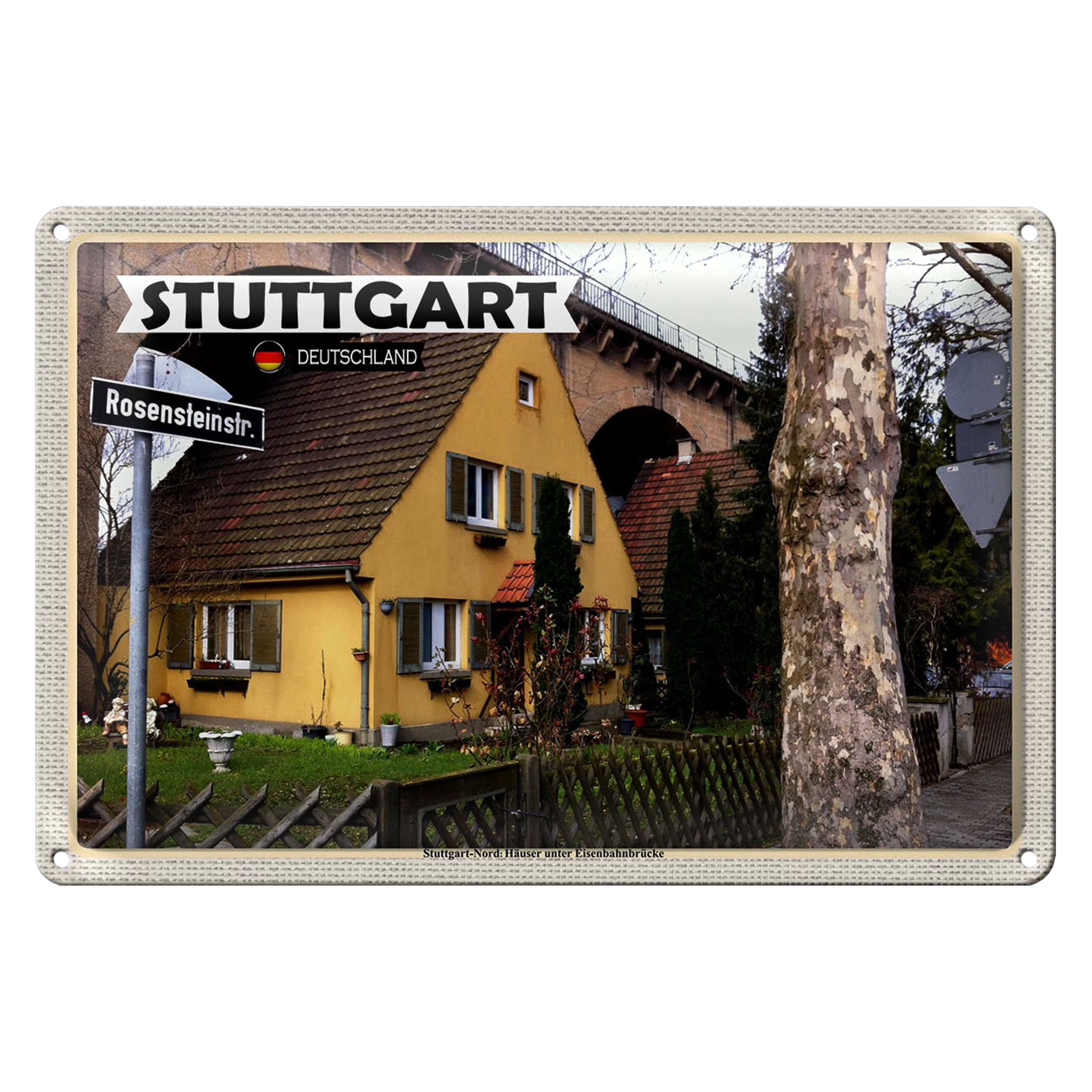 Blechschild Städte Stuttgart Nord Haus Eisenbahnbrücke 30x20cm