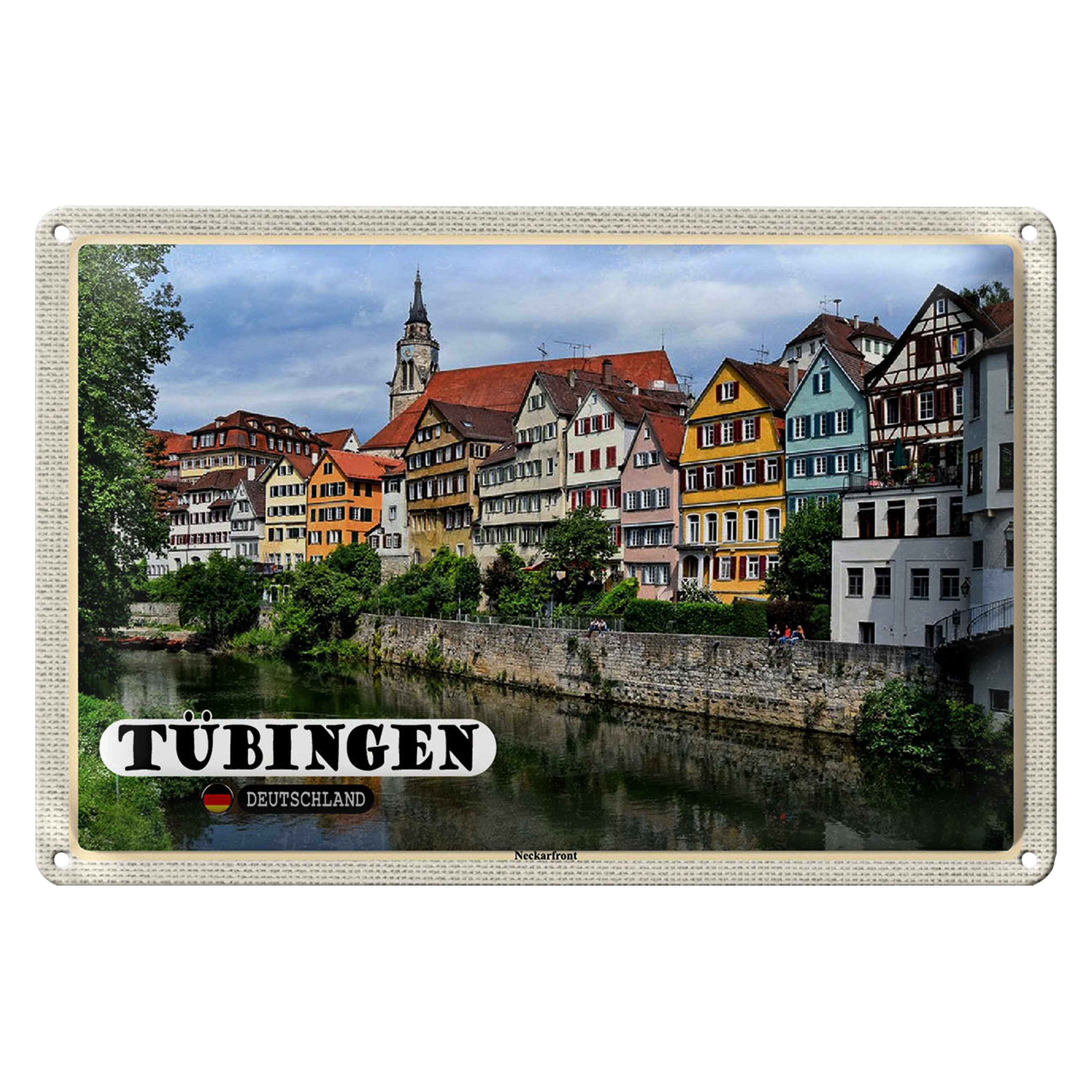 Blechschild Städte Tübingen Neckarfront Fluss Gebäude 30x20cm