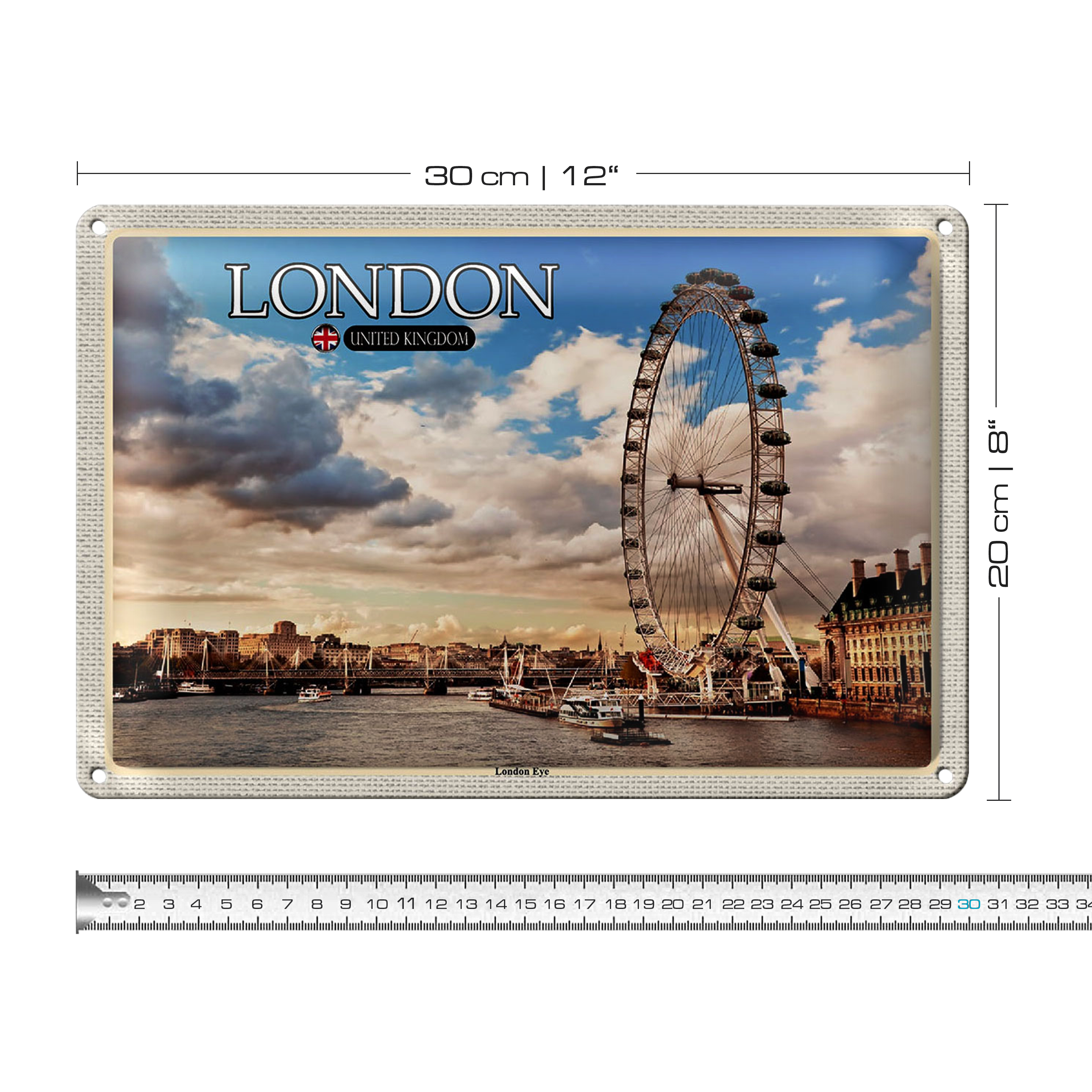Blechschild Städte United Kingdom England London Eye 30x20cm