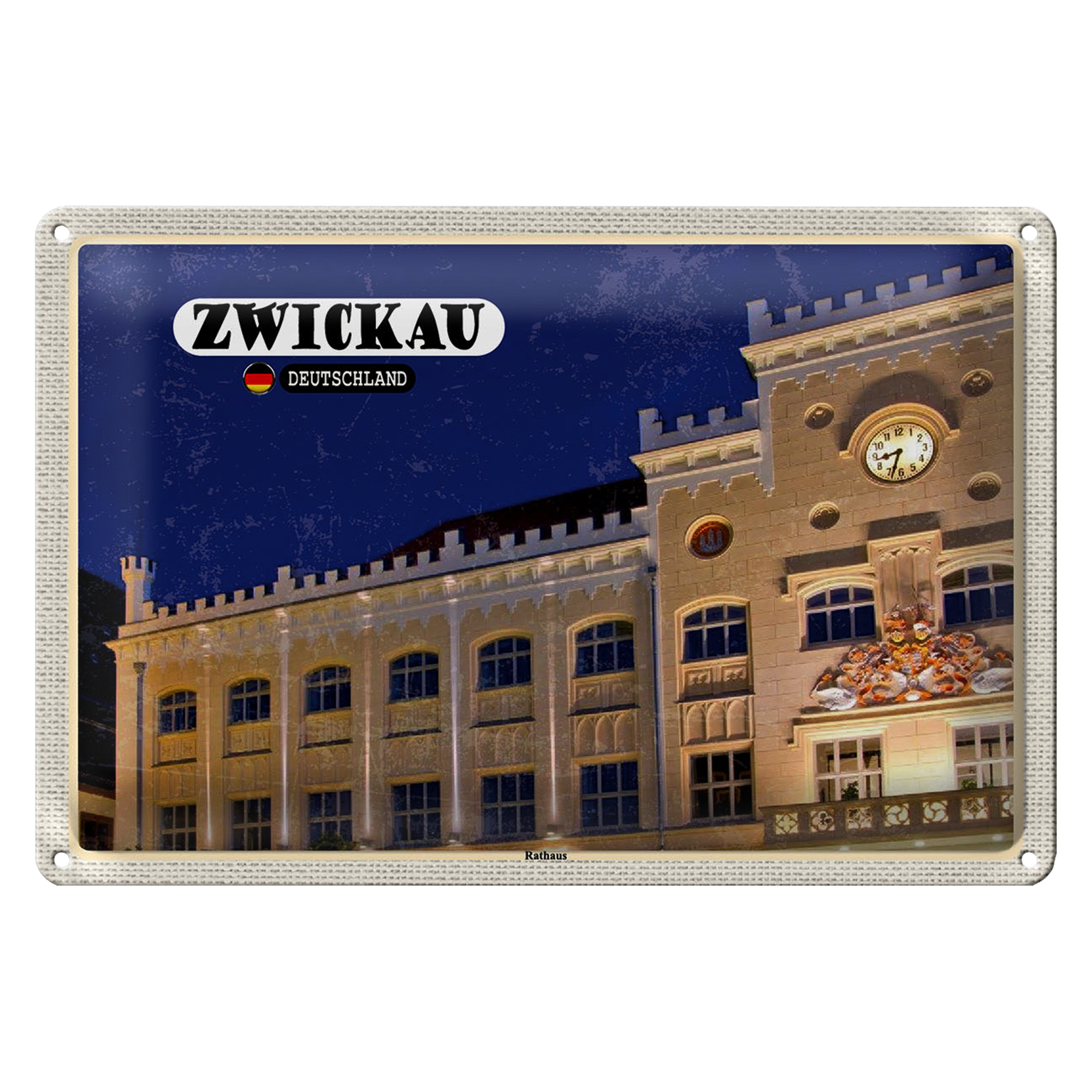 Blechschild Städte Zwickau Rathaus Architektur 30x20cm