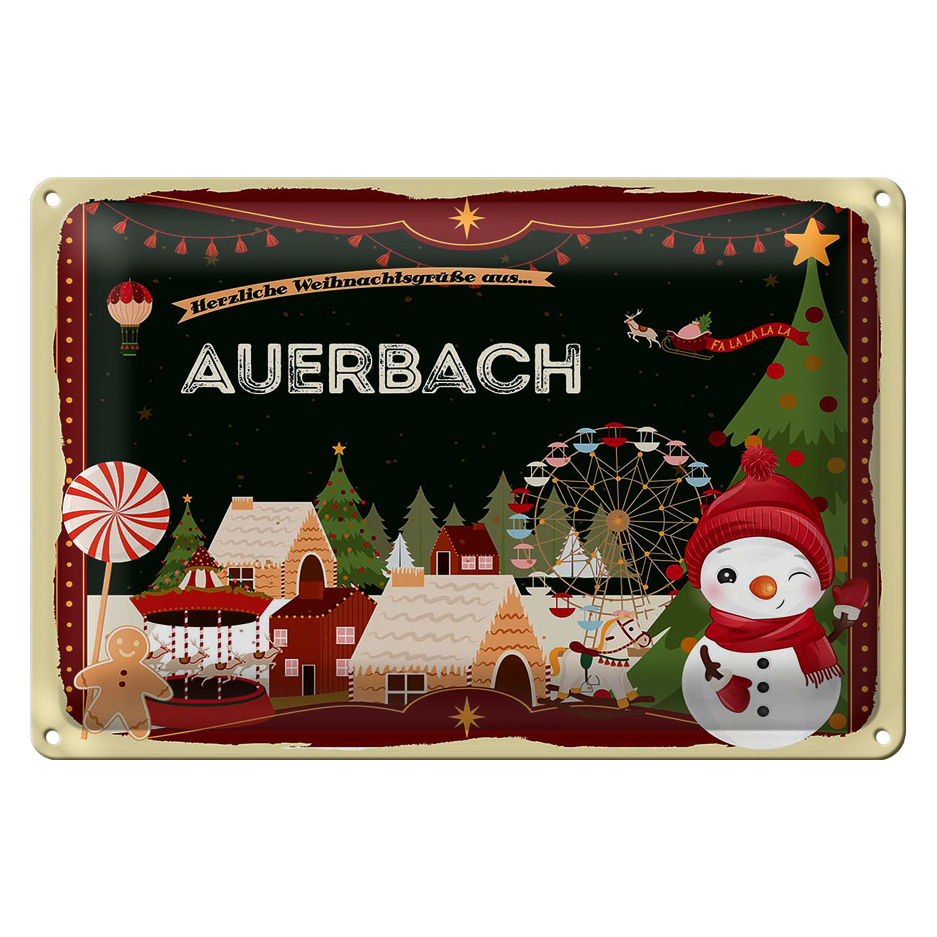 Blechschild Weihnachten Grüße AUERBACH 30x20cm