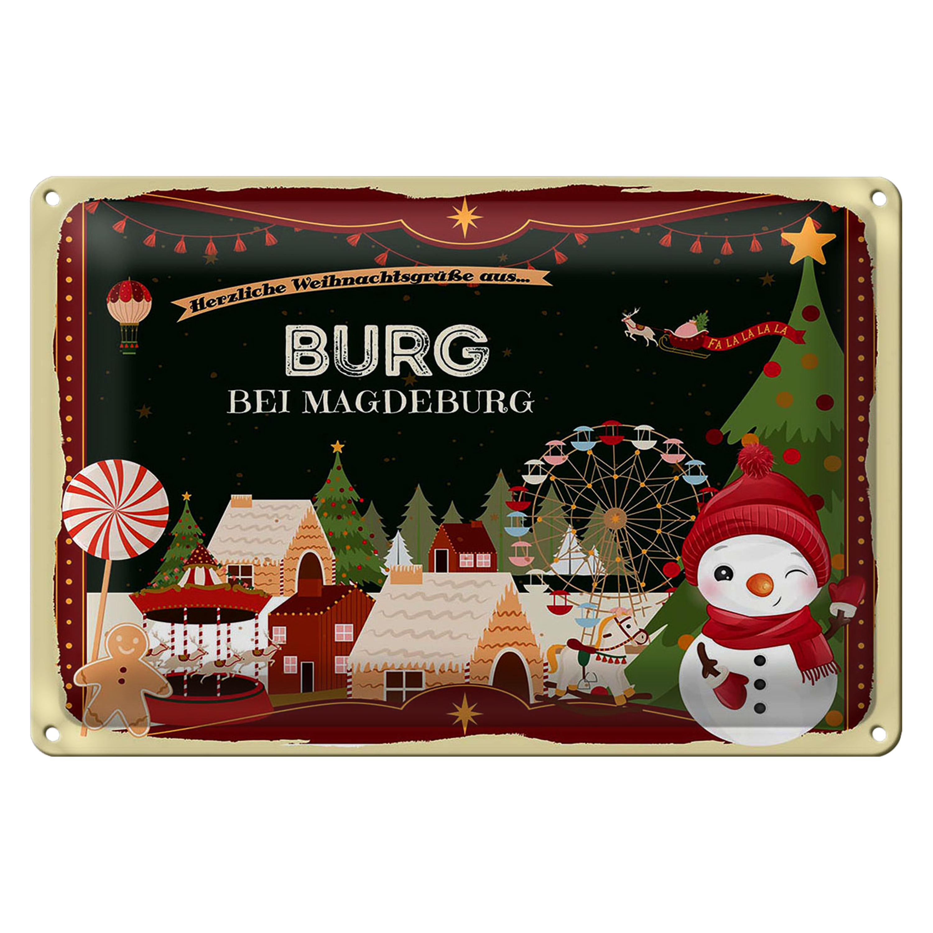 Blechschild Weihnachten Grüße aus BURG bei MAGDEBURG 30x20cm