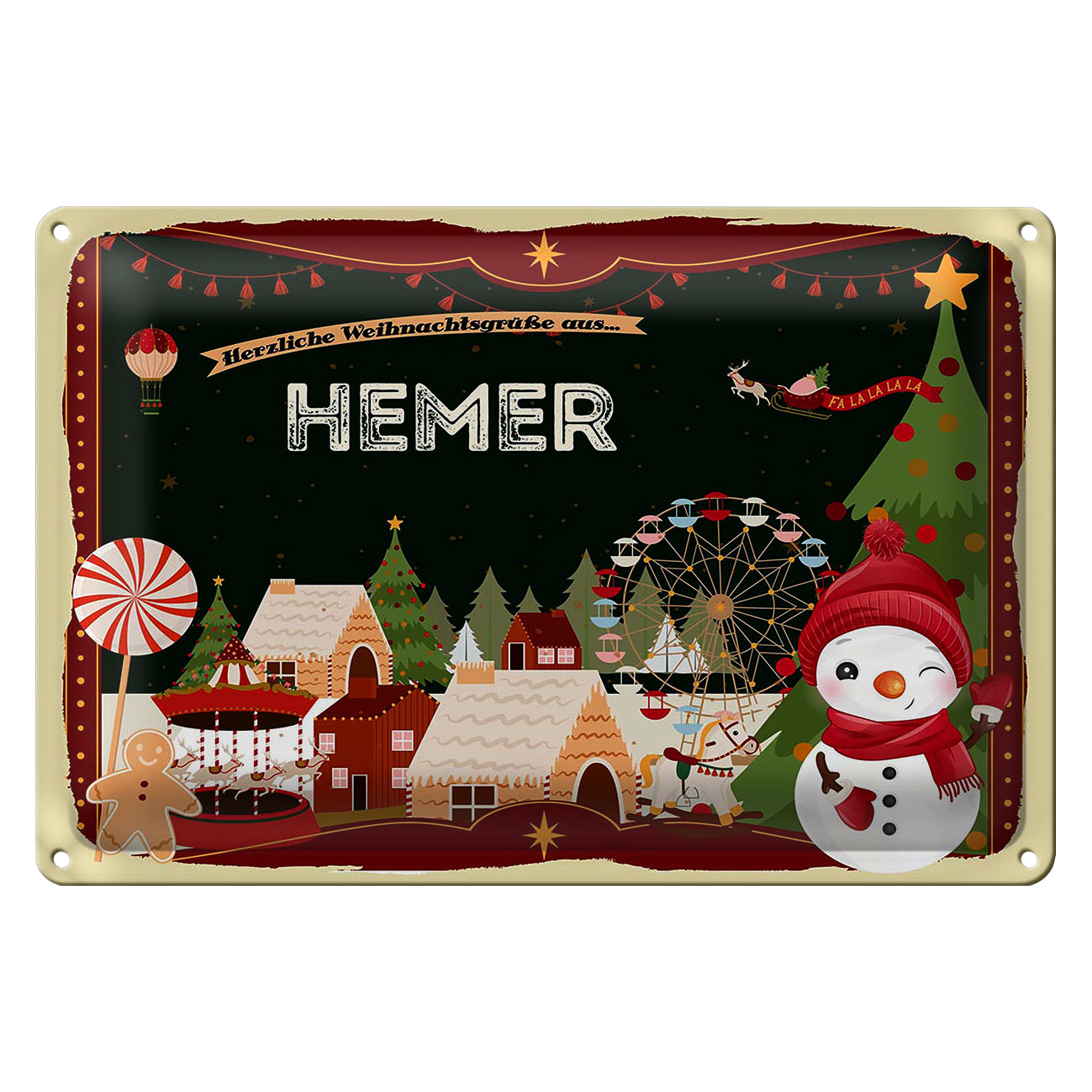 Blechschild Weihnachten Grüße aus HEMER 30x20cm