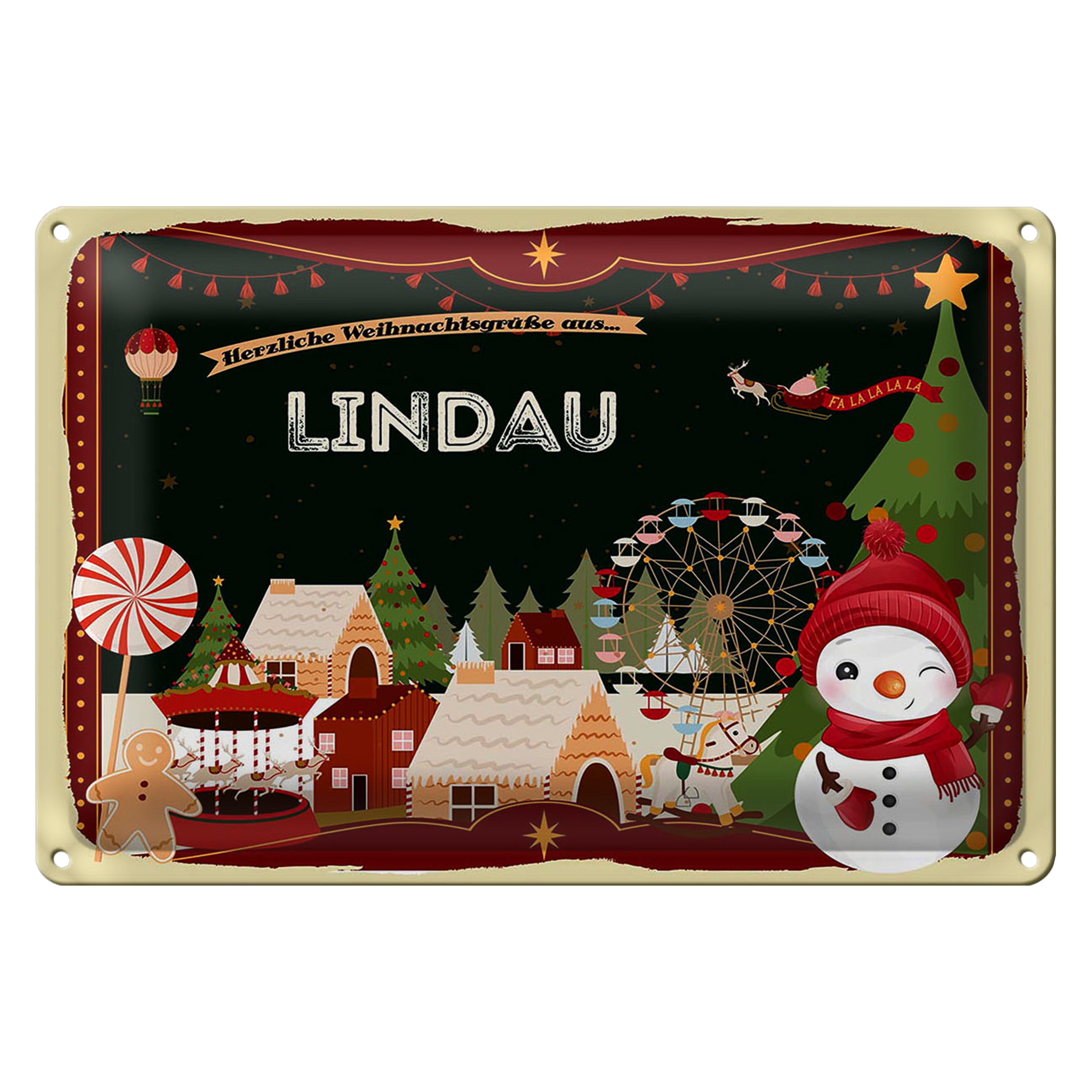 Blechschild Weihnachten Grüße aus LINDAU 30x20cm
