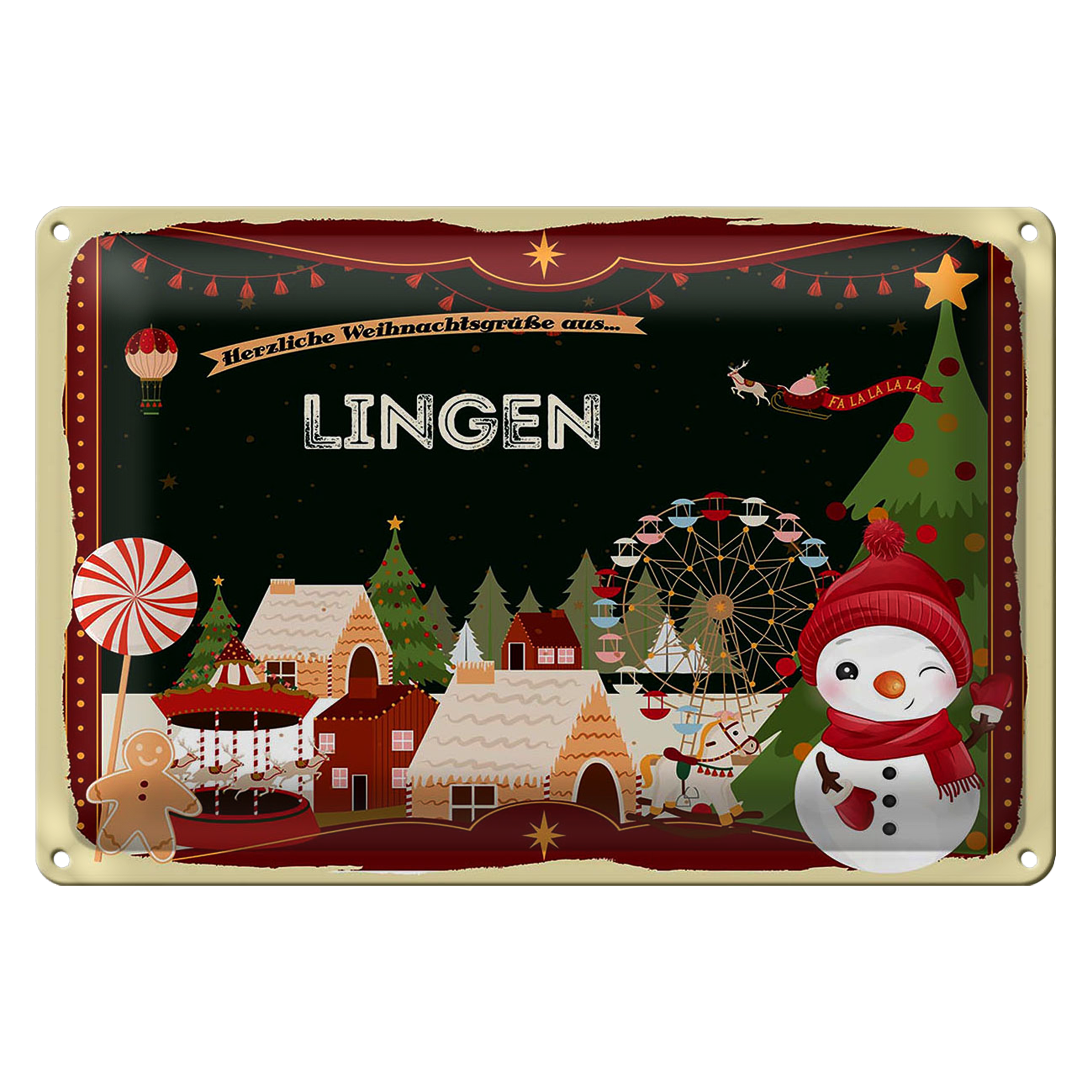 Blechschild Weihnachten Grüße aus LINGEN 30x20cm
