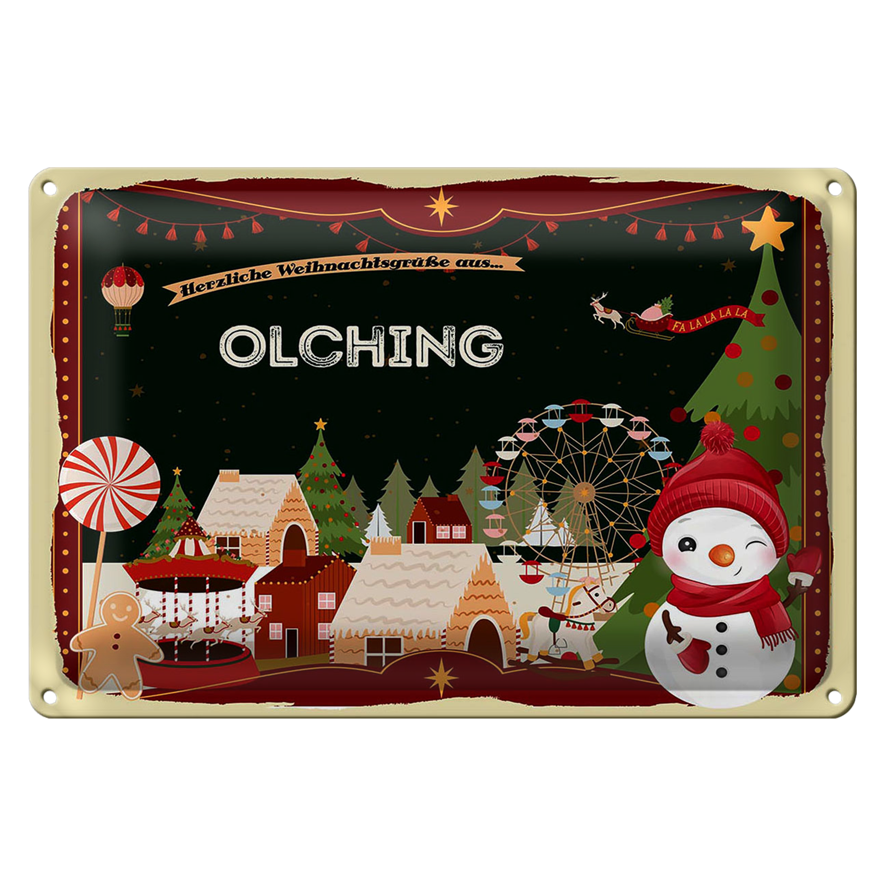 Blechschild Weihnachten Grüße aus OLCHING 30x20cm