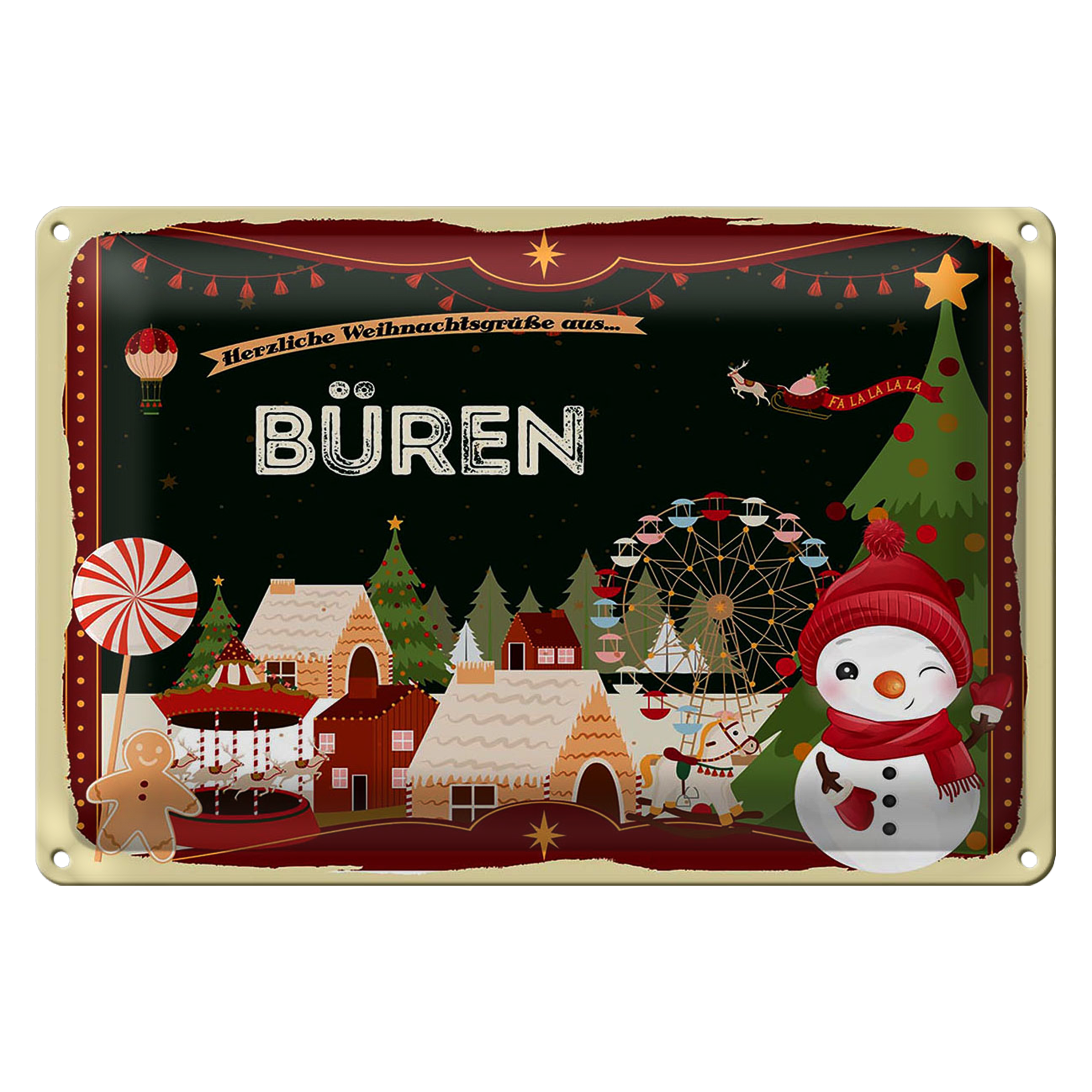 Blechschild Weihnachten Grüße BÜREN Fest 30x20cm