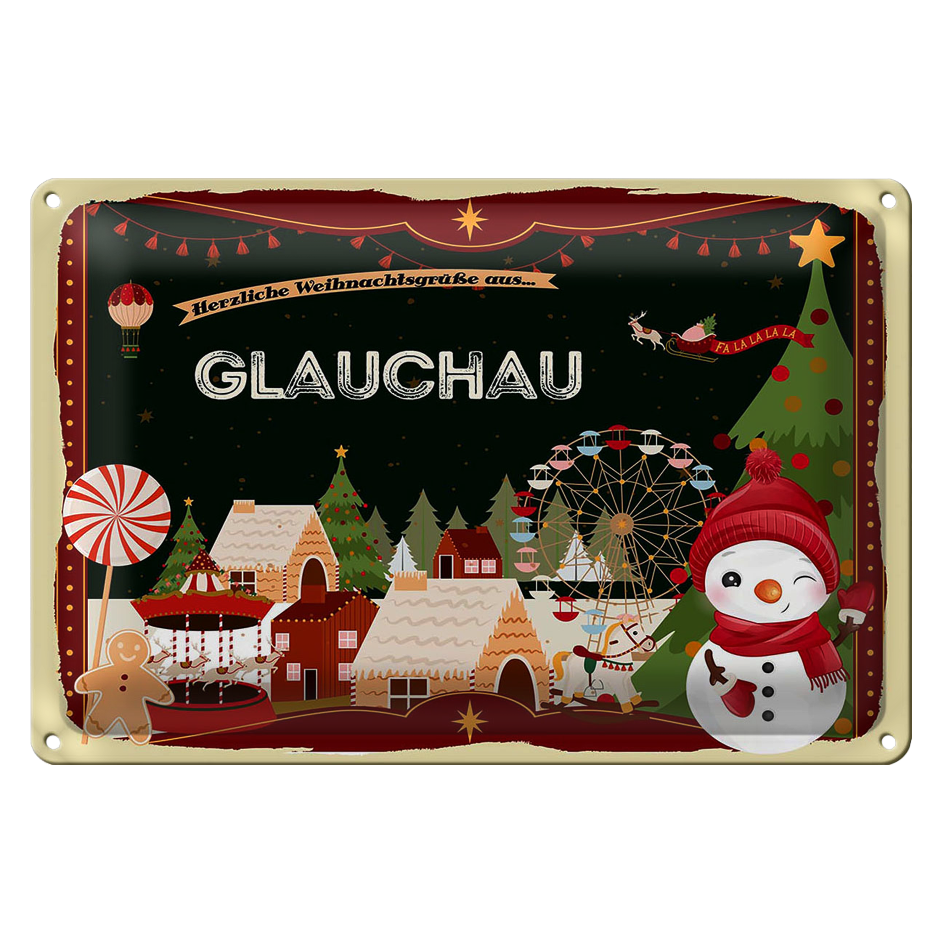 Blechschild Weihnachten Grüße GLAUCHAU 30x20cm