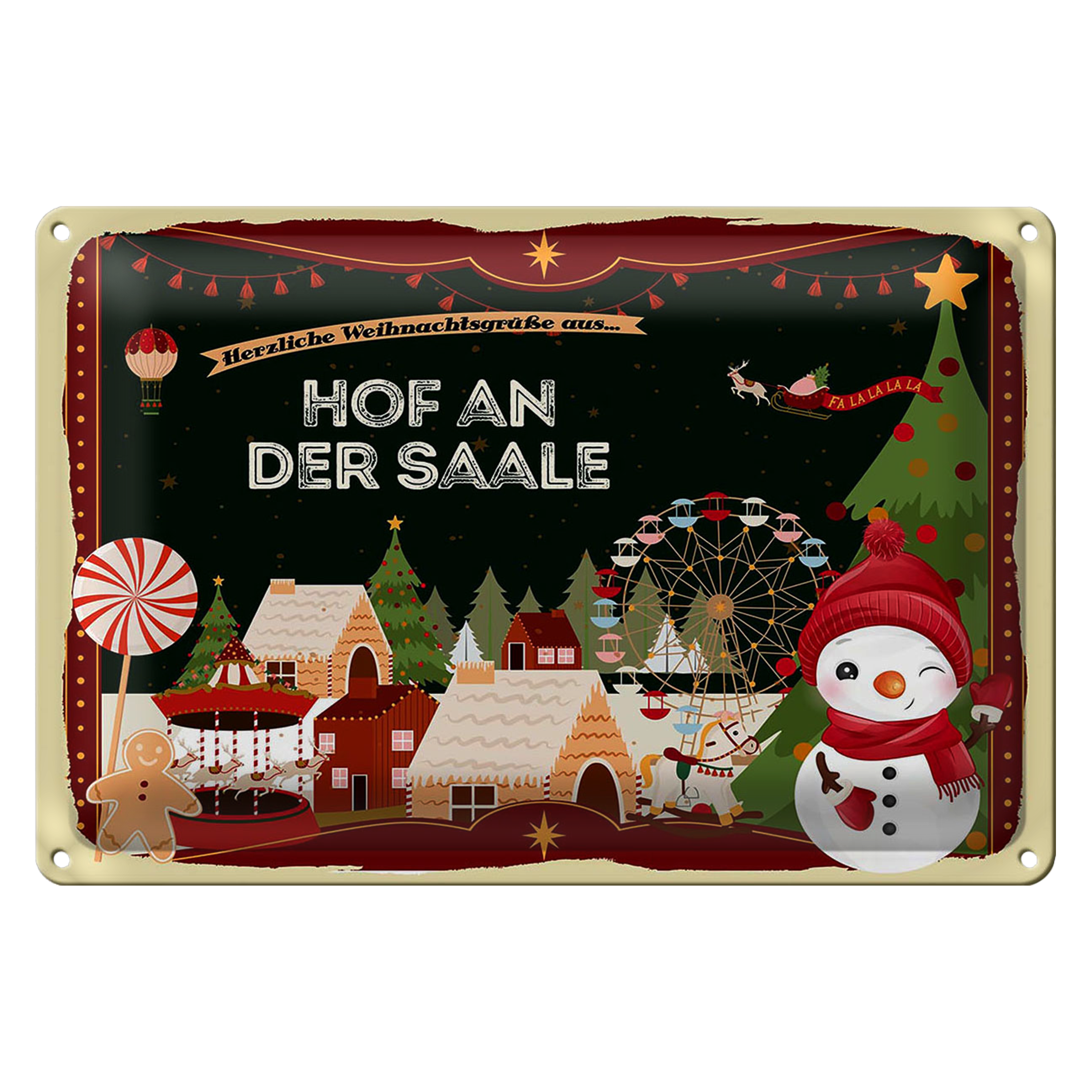 Blechschild Weihnachten Grüße HOF AN DER SAALE 30x20cm