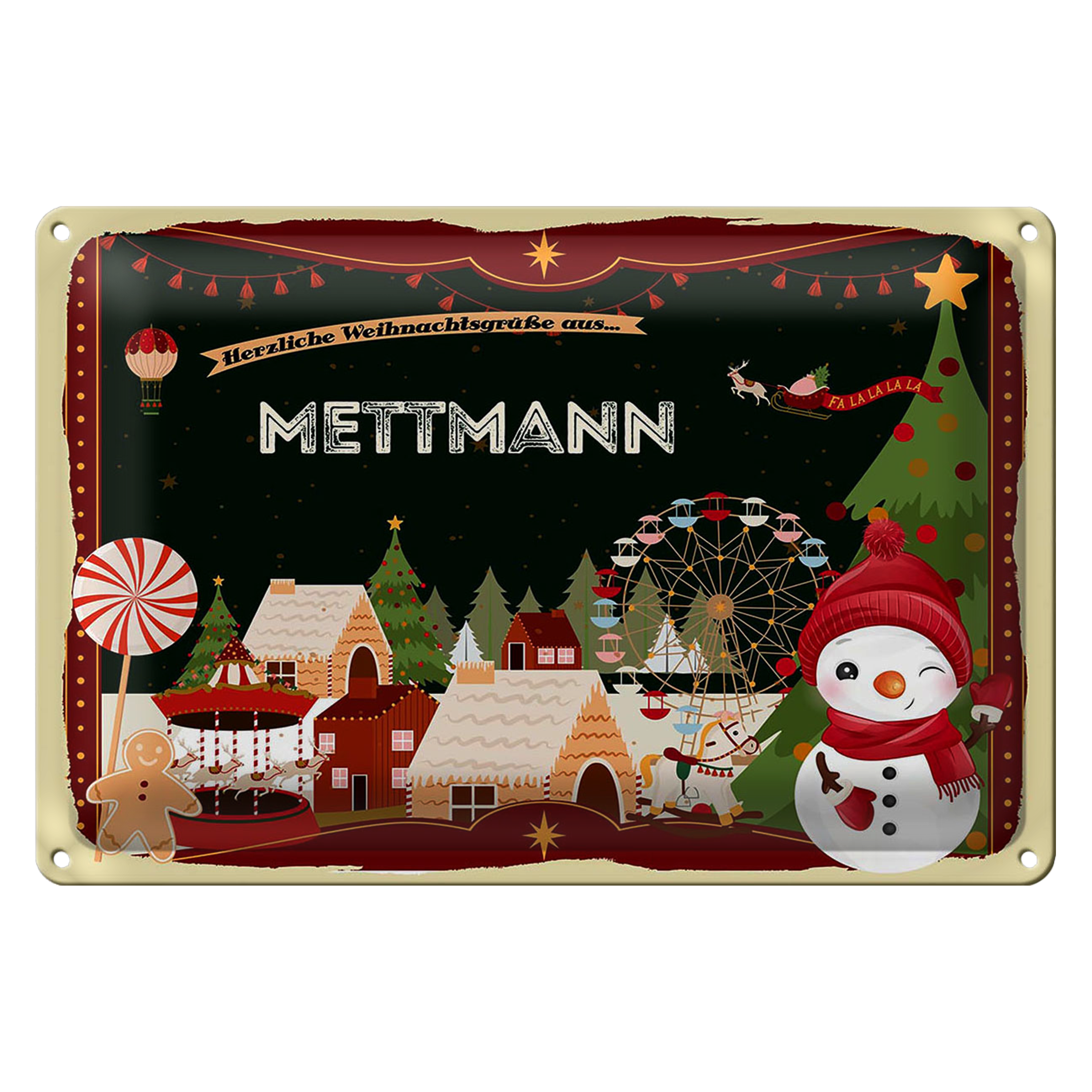 Blechschild Weihnachten Grüße METTMANN 30x20cm