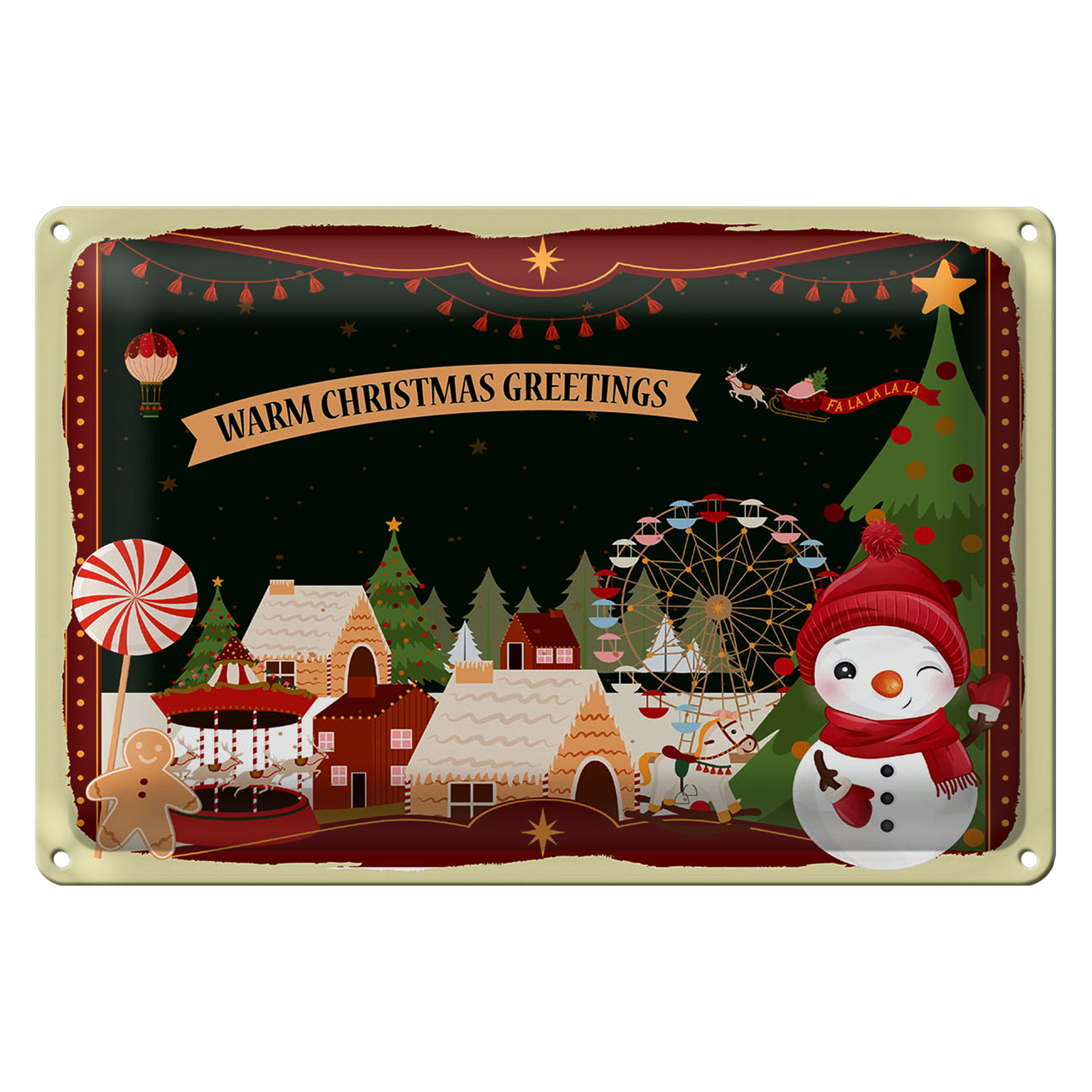 Blechschild Weihnachten WARM CHRISTMAS GREETINGS 30x20cm