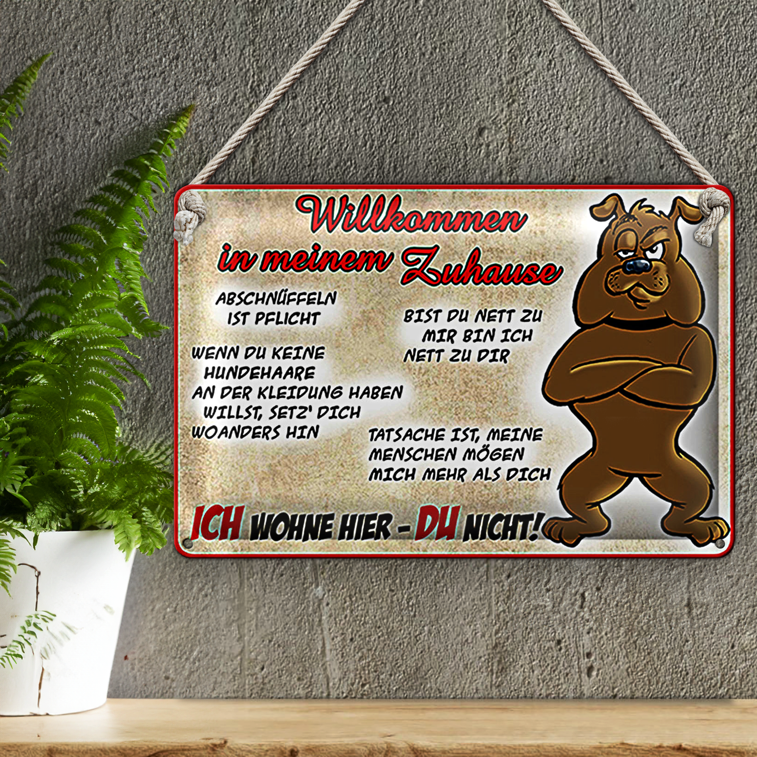 Blechschild Willkommen 30x20cm Ich wohne hier Du nicht