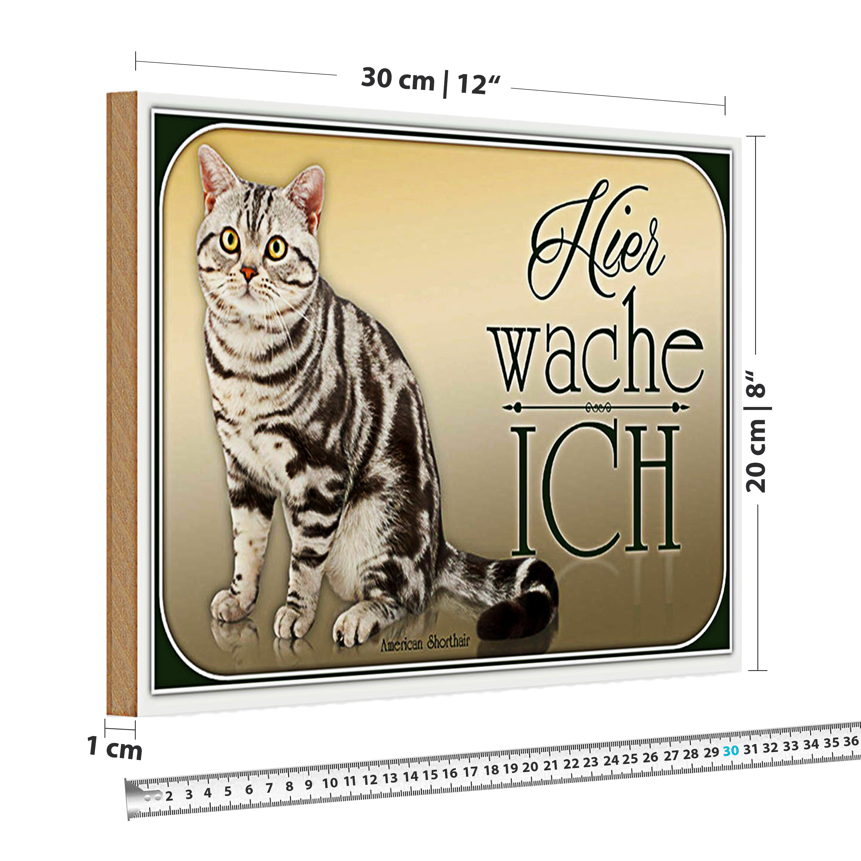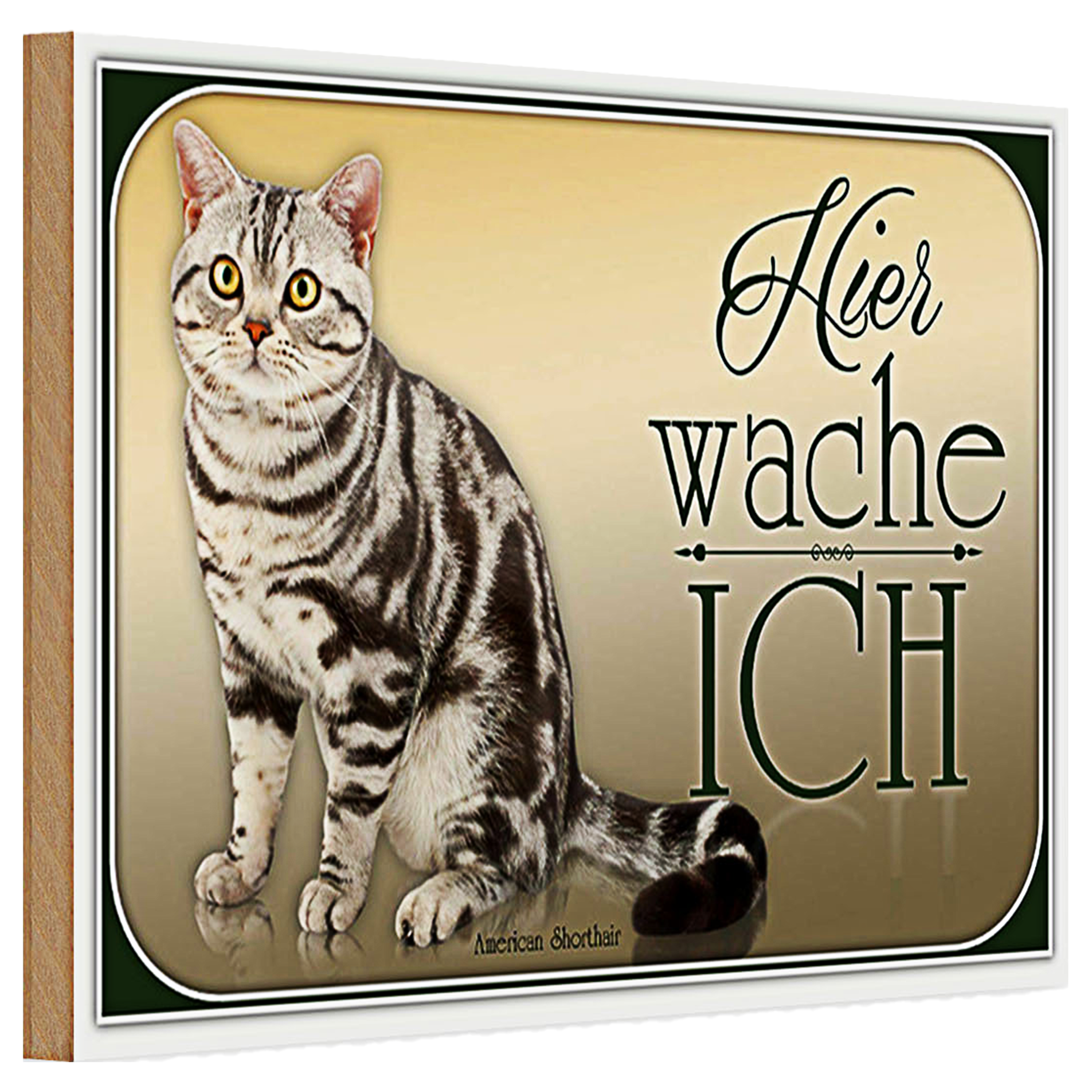 Holzschild Katze 30x20cm American Shorthair hier wache