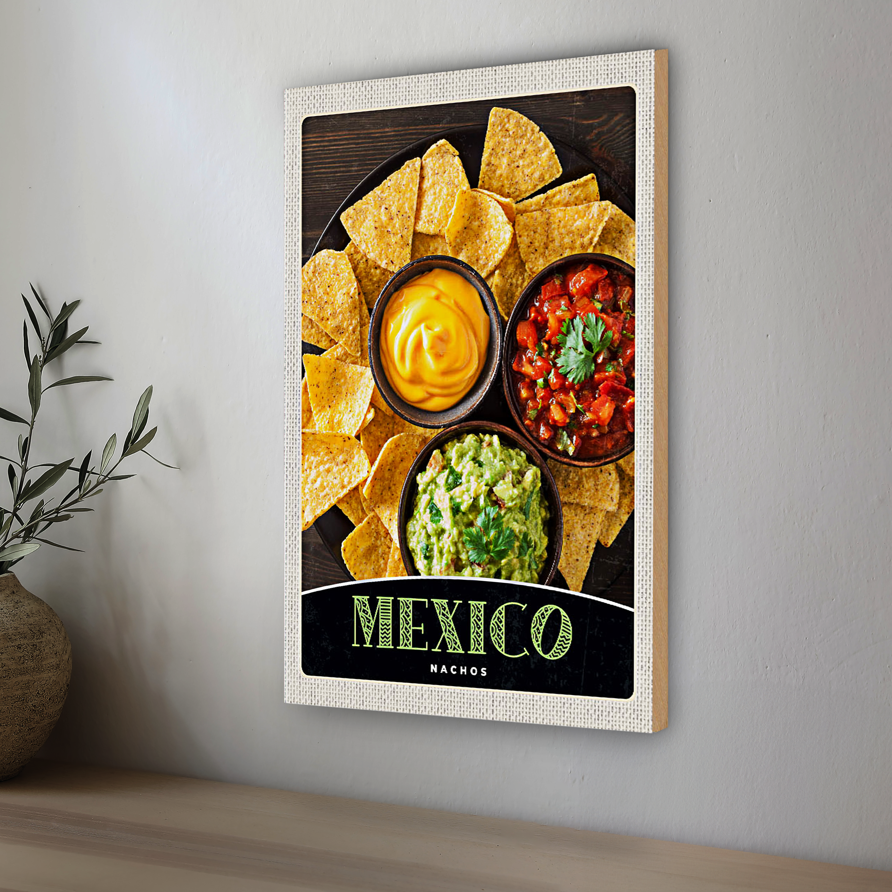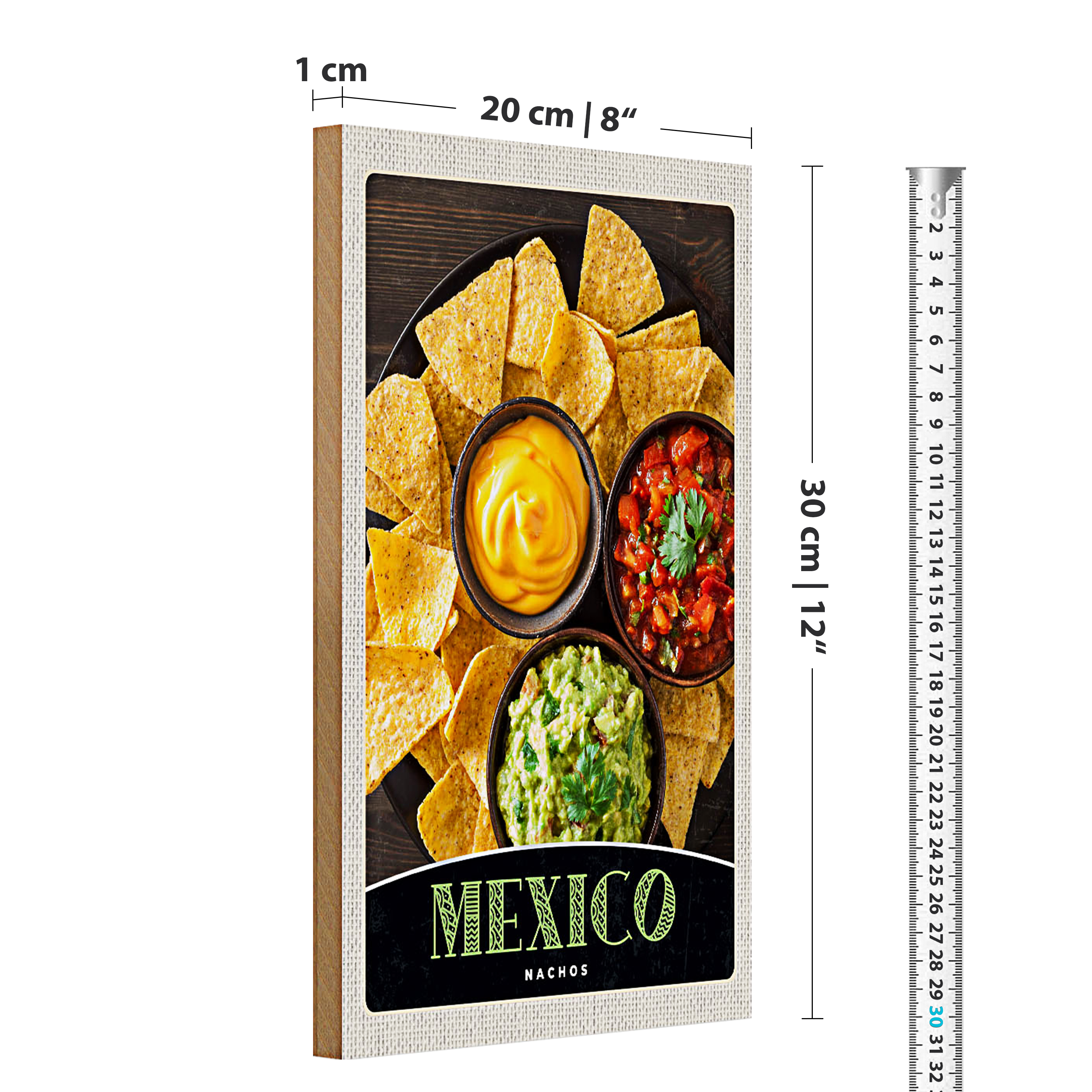 Holzschild Reise 20x30cm Mexiko Nachos Käse scharf Gerichte