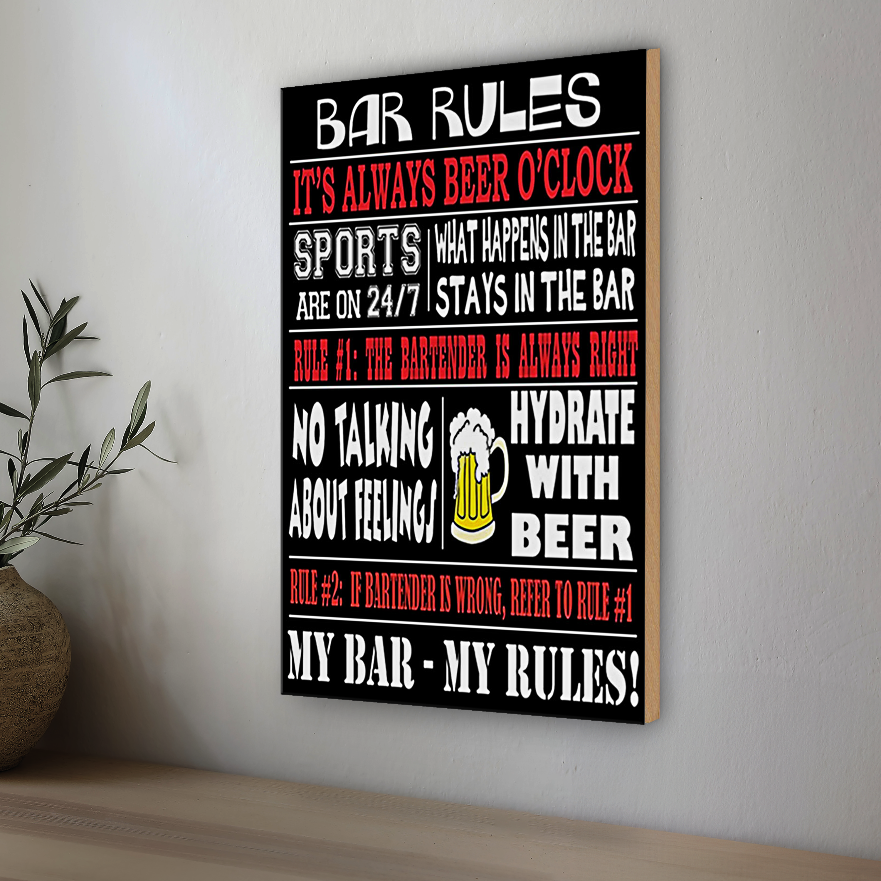 Holzschild Spruch 20x30cm Bar rules Bier my bar my rules
