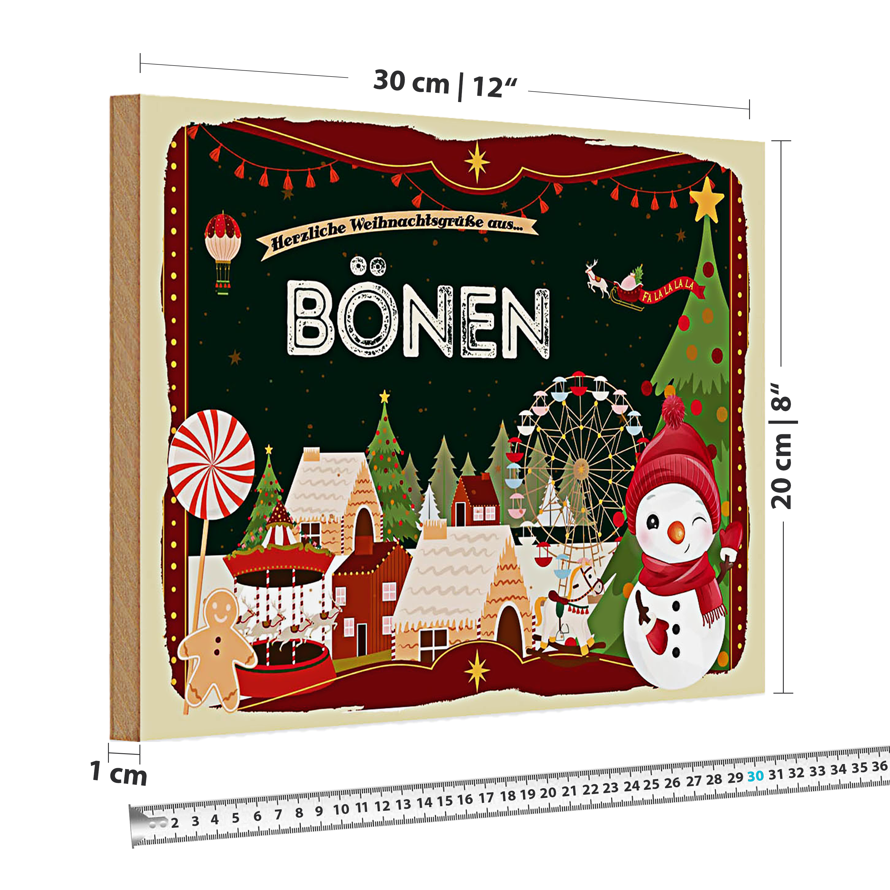 Holzschild Weihnachten Grüße aus BÖNEN 30x20cm