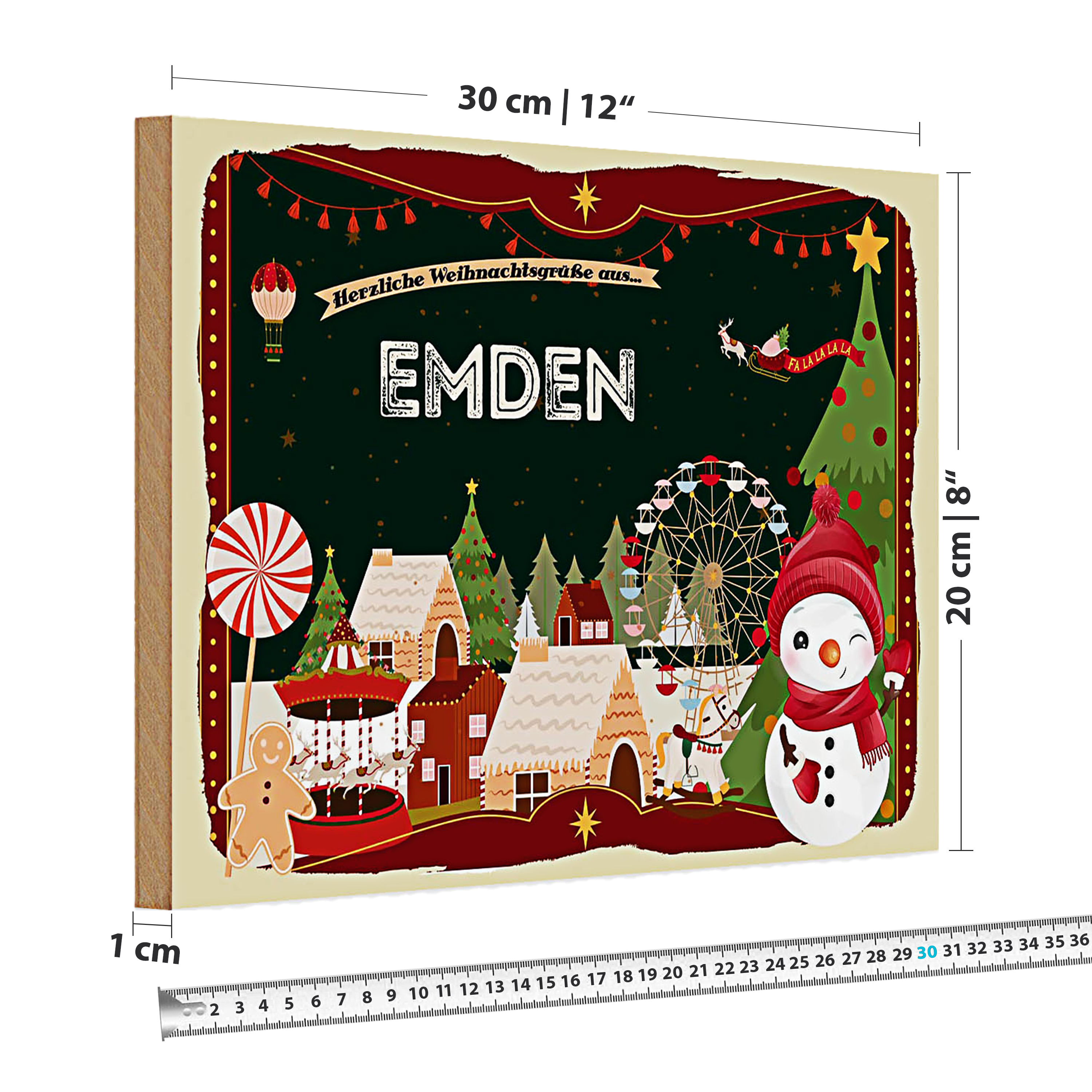 Holzschild Weihnachten Grüße aus EMDEN 30x20cm