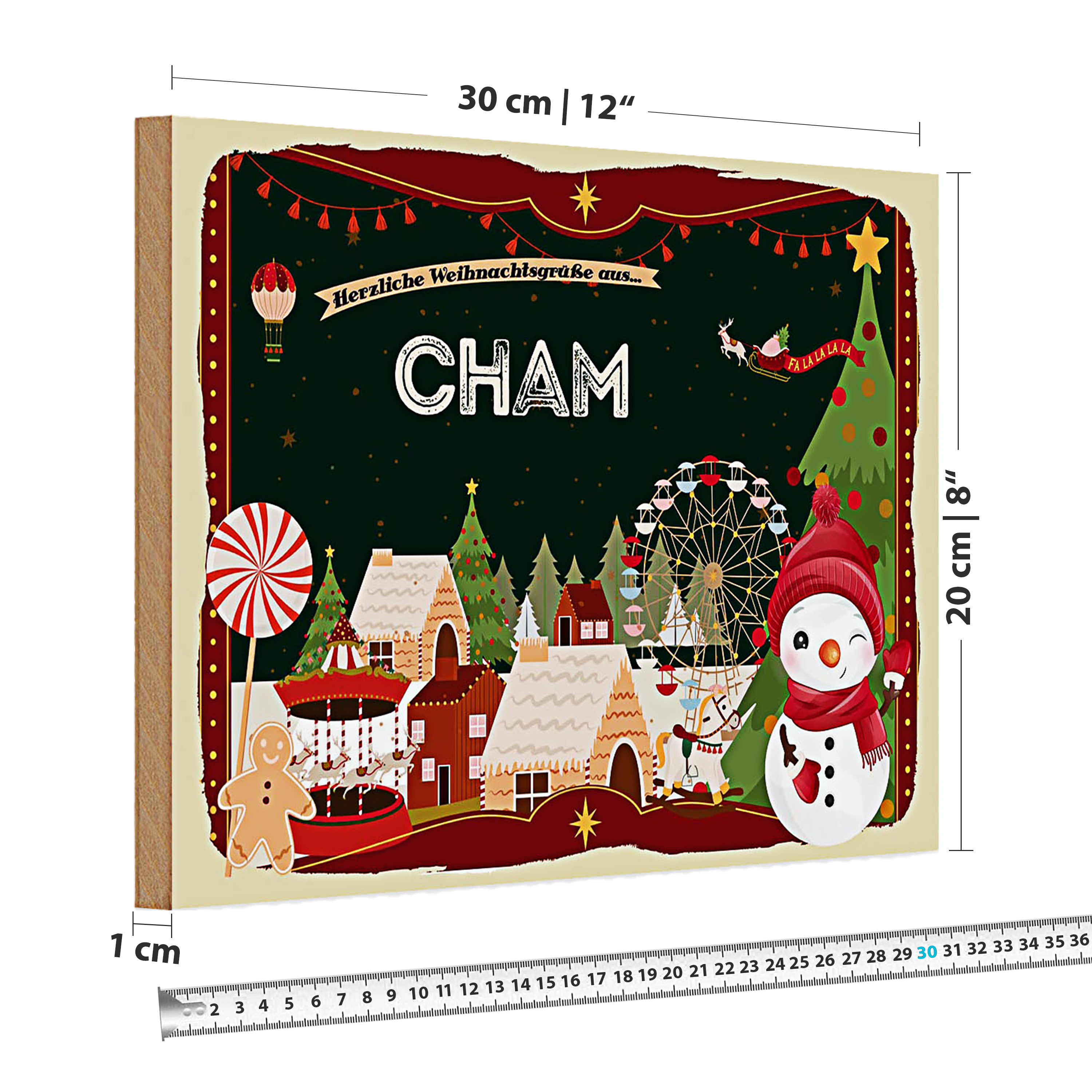 Holzschild Weihnachten Grüße CHAM Fest 30x20cm