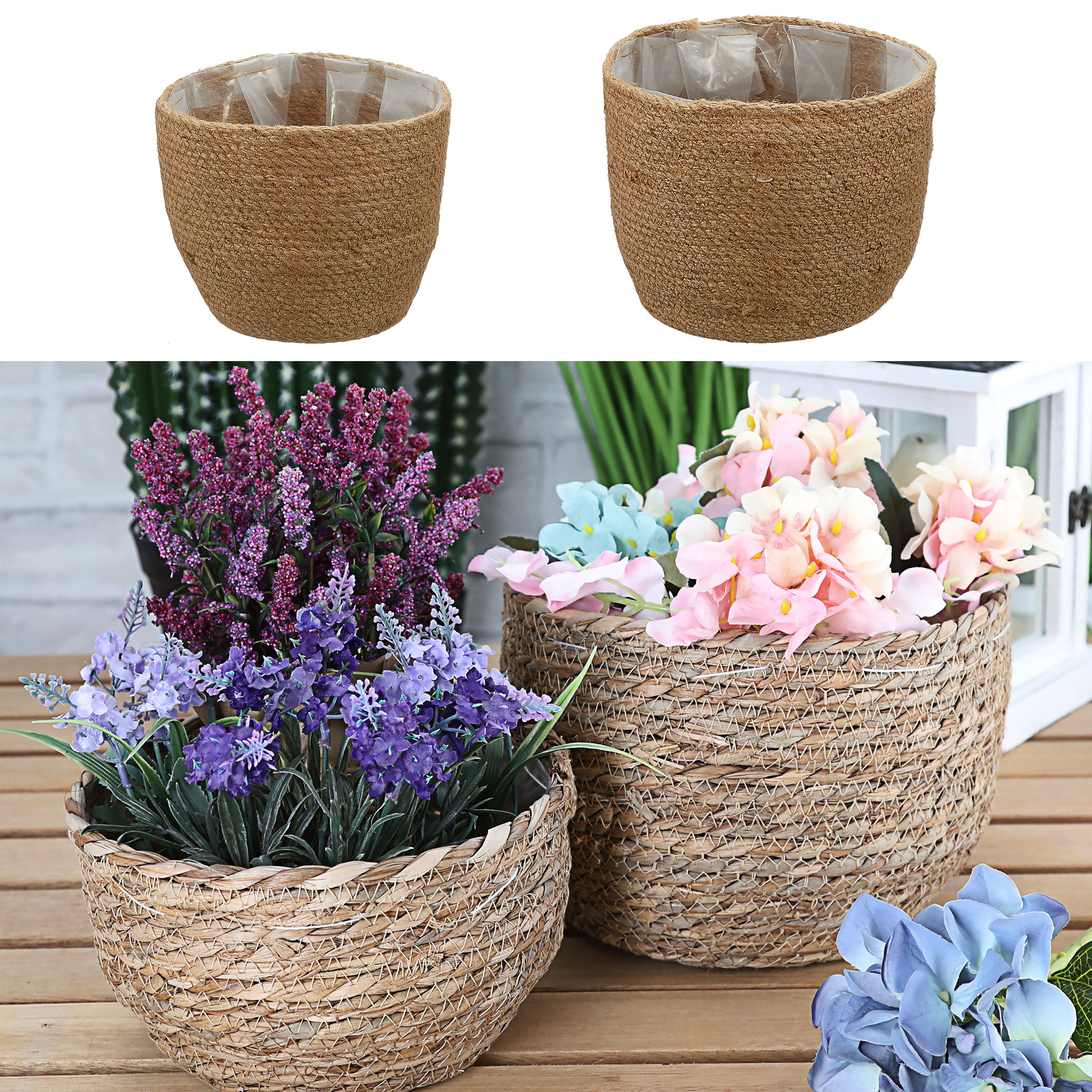 | 2er Set Aufbewahrungskorb Pflanzkorb Hanf Kunstofffolien-Inlay | ||||||||||||||